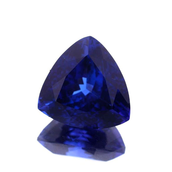 This loose tanzanite is shaped into a trilliant cut for high luster and superior sparkle. It features a dark blue hue for a touch of elegance. It is ideal for mounting on jewelry pieces.