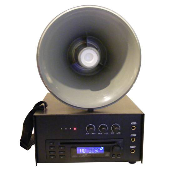 The featured item is a loud speaker which is ideal to be used in high noise areas and large open spaces. It is easy to control, lightweight, and does not hinders the user's sight.