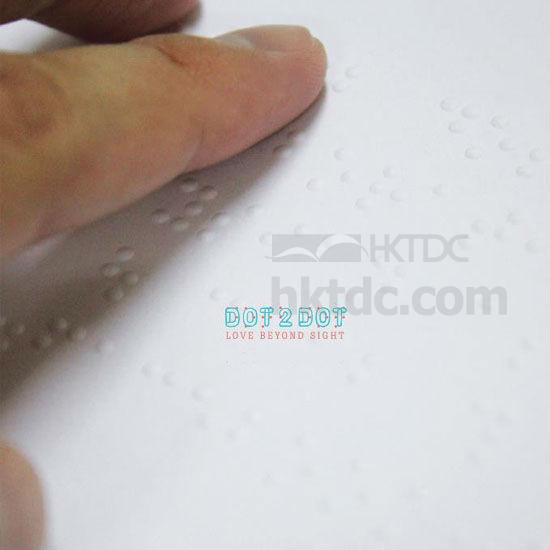 By referring the instruction sheet and basic Braille chart enclosed in the greeting card, recipient will be able to solve the Braille dots and “decode” the sender name. This is how one could learn and understand simple Braille in a fun and interactive method.