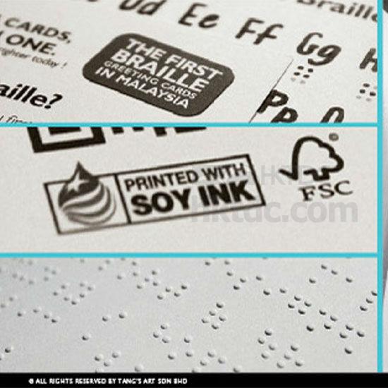 By referring the instruction sheet and basic Braille chart enclosed in the greeting card, recipient will be able to solve the Braille dots and “decode” the sender name. This is how one could learn and understand simple Braille in a fun and interactive method.
