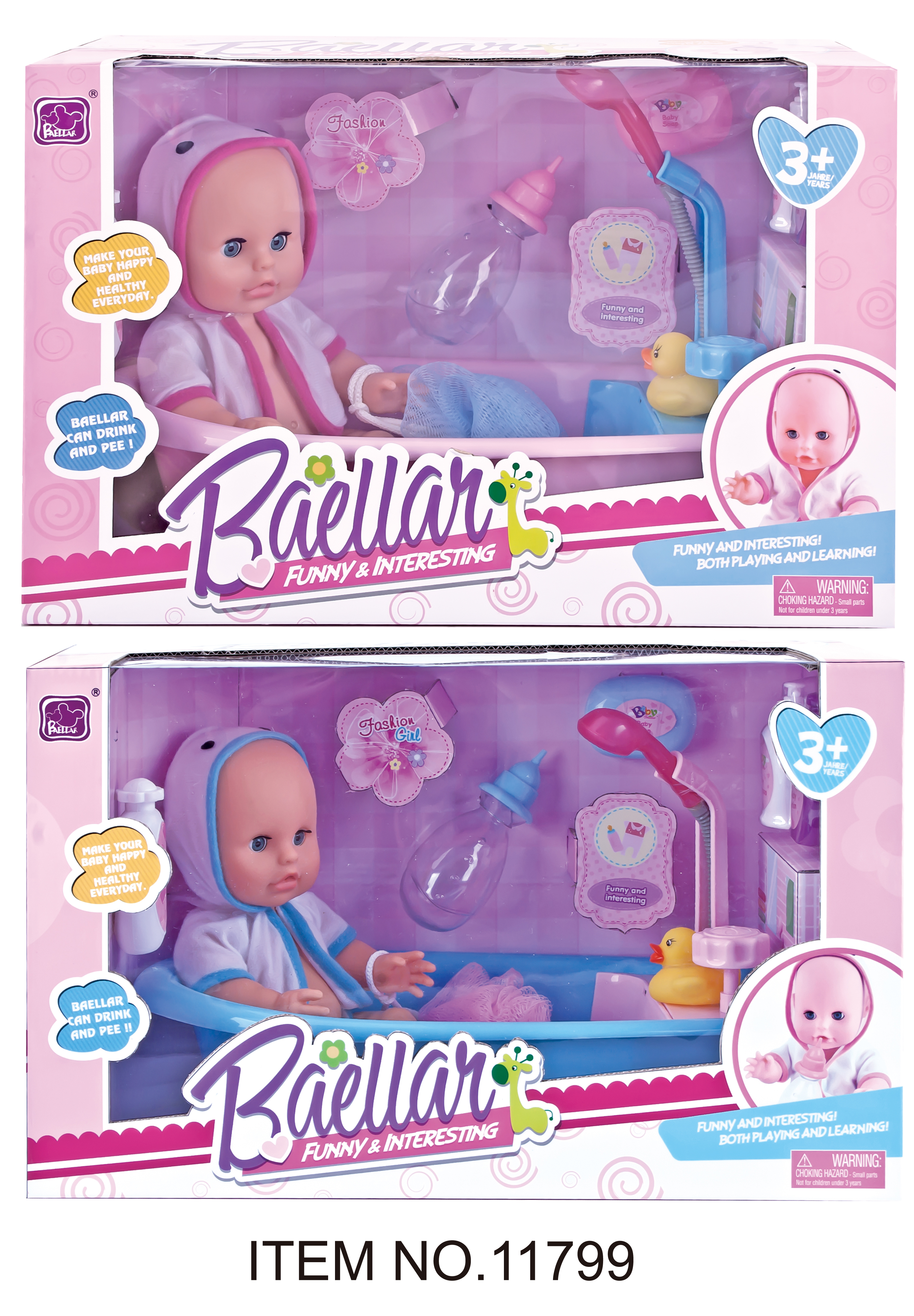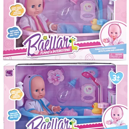 Function: Doll can drink and pee, press the bathtub, and it'll flush