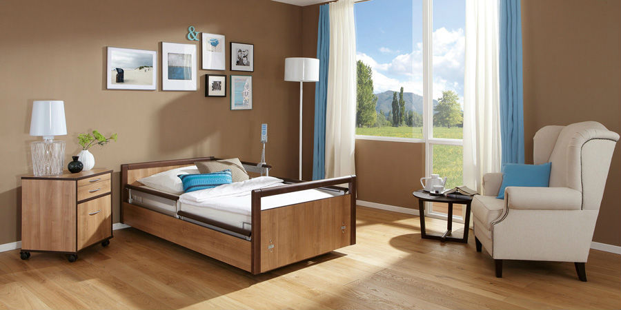 Low height nursing home 4 split side guard double retraction for pressure sore prevention