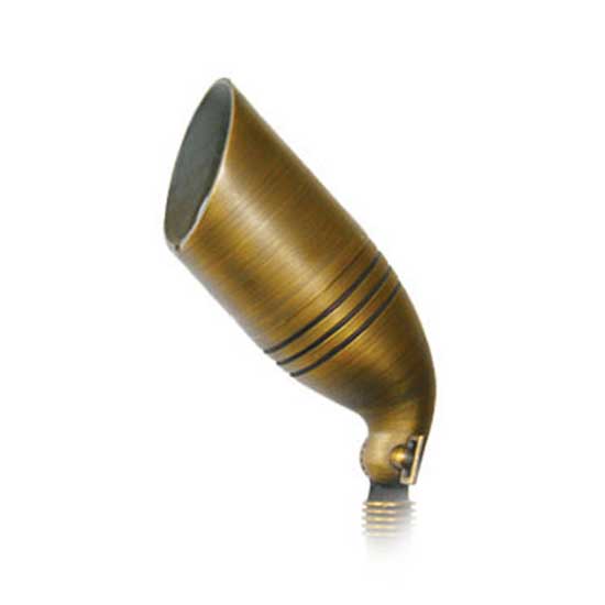 This is a spotlight with a durable and unique housing in gold. It is a low voltage (12V) landscape lighting fixture. This spotlight is suitable for fitting with MR16 halogen or LED bulbs.