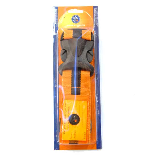 This luggage strap features a snap buckle closure. To better suit the sizes of different travel bags, the length of this orange luggage strap is adjustable. A name card window is set on the strap for displaying personal information of the luggage owner.