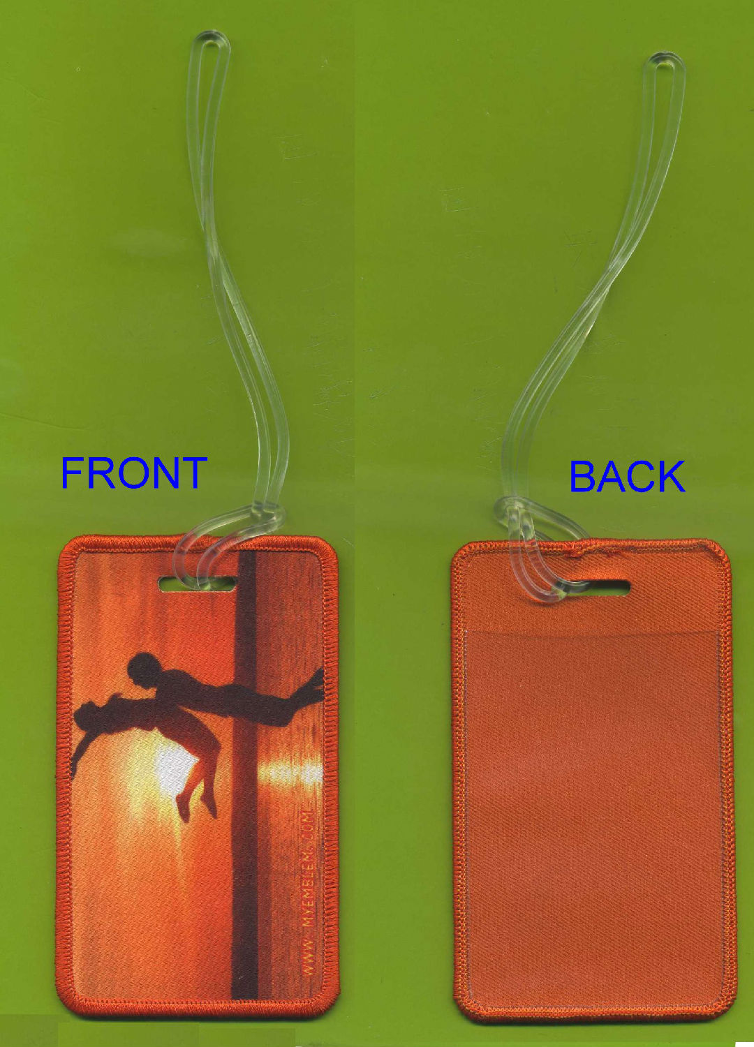 Front side of embroidery with pinting, Backside of pastic pocket for a name card