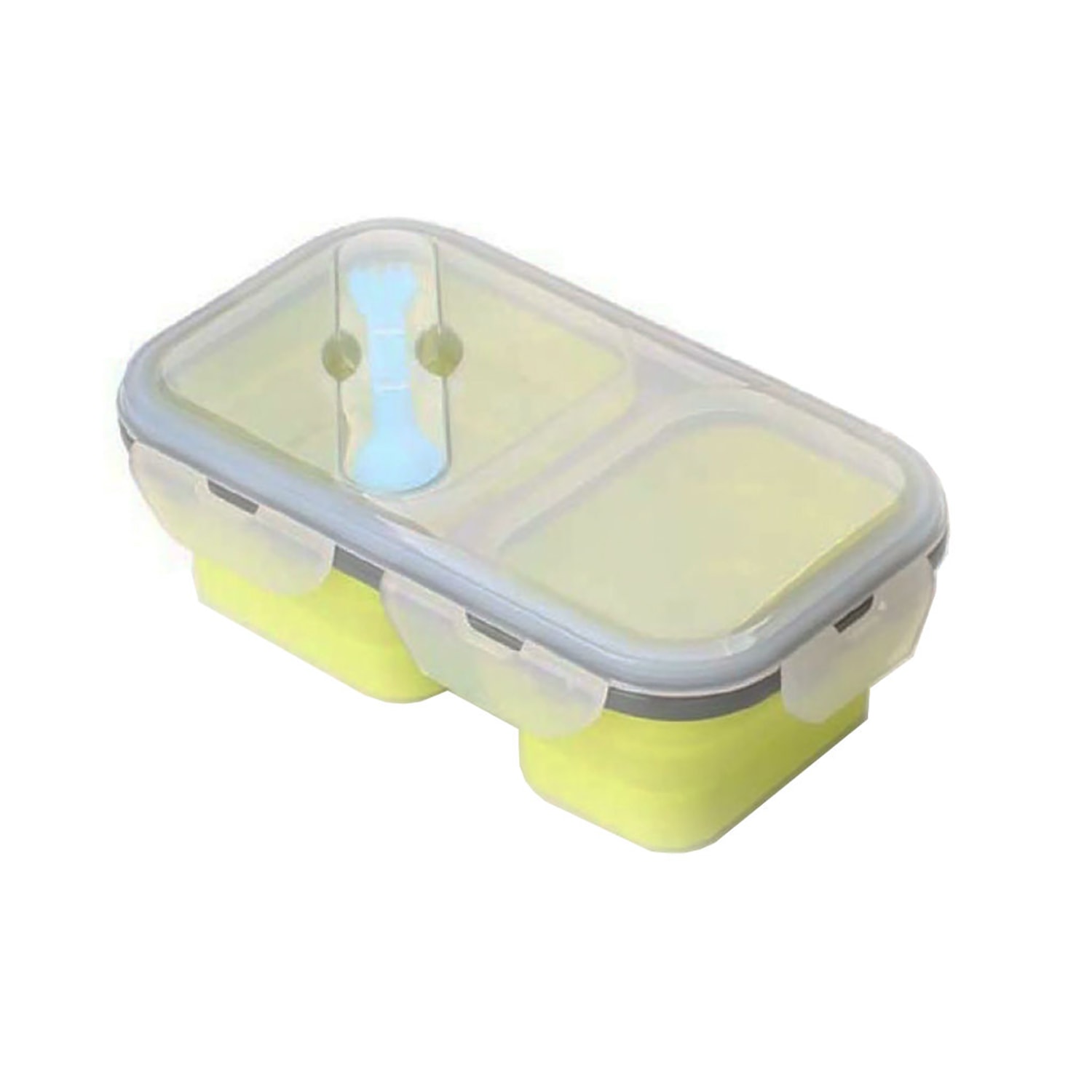 Rectangular-Shaped Silicone Food Container with Fork and Spoon includes the following features :