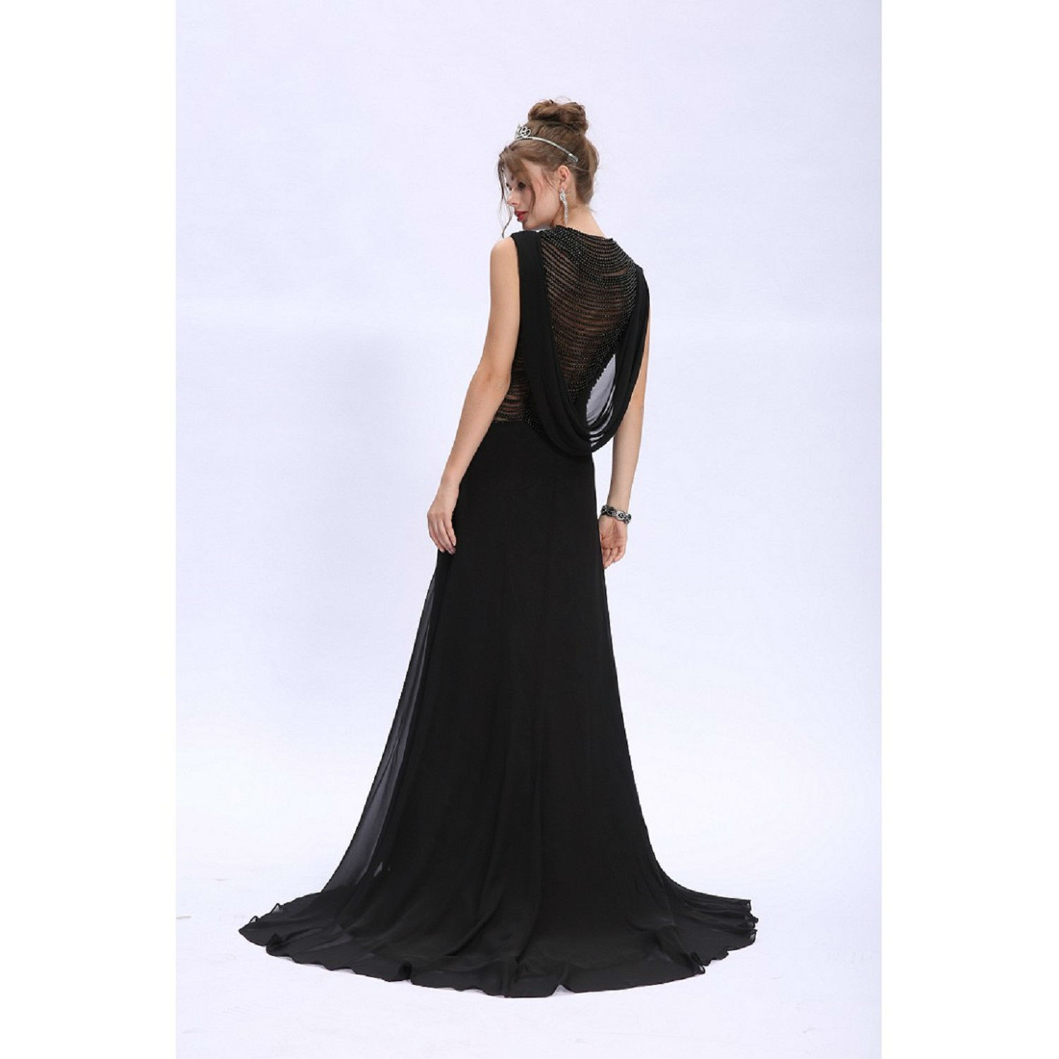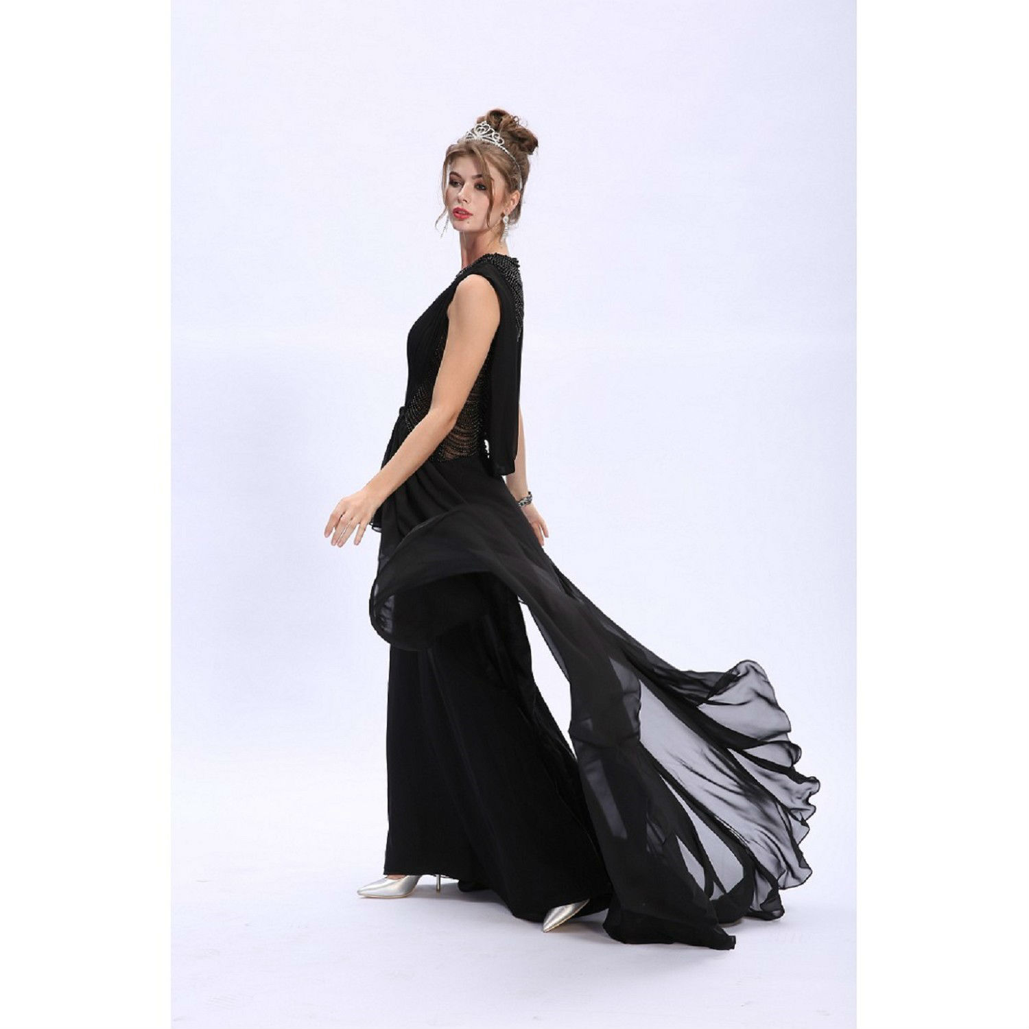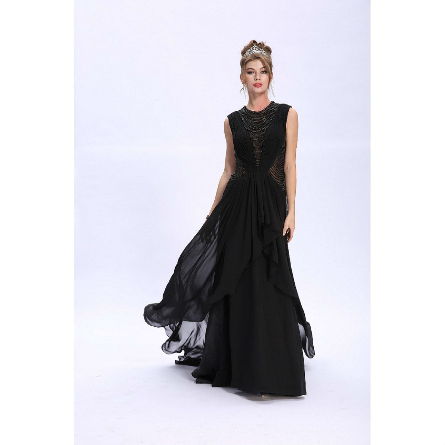 Luxe Stylish Pearl-Trains Dero Ruched Chiffon Gown