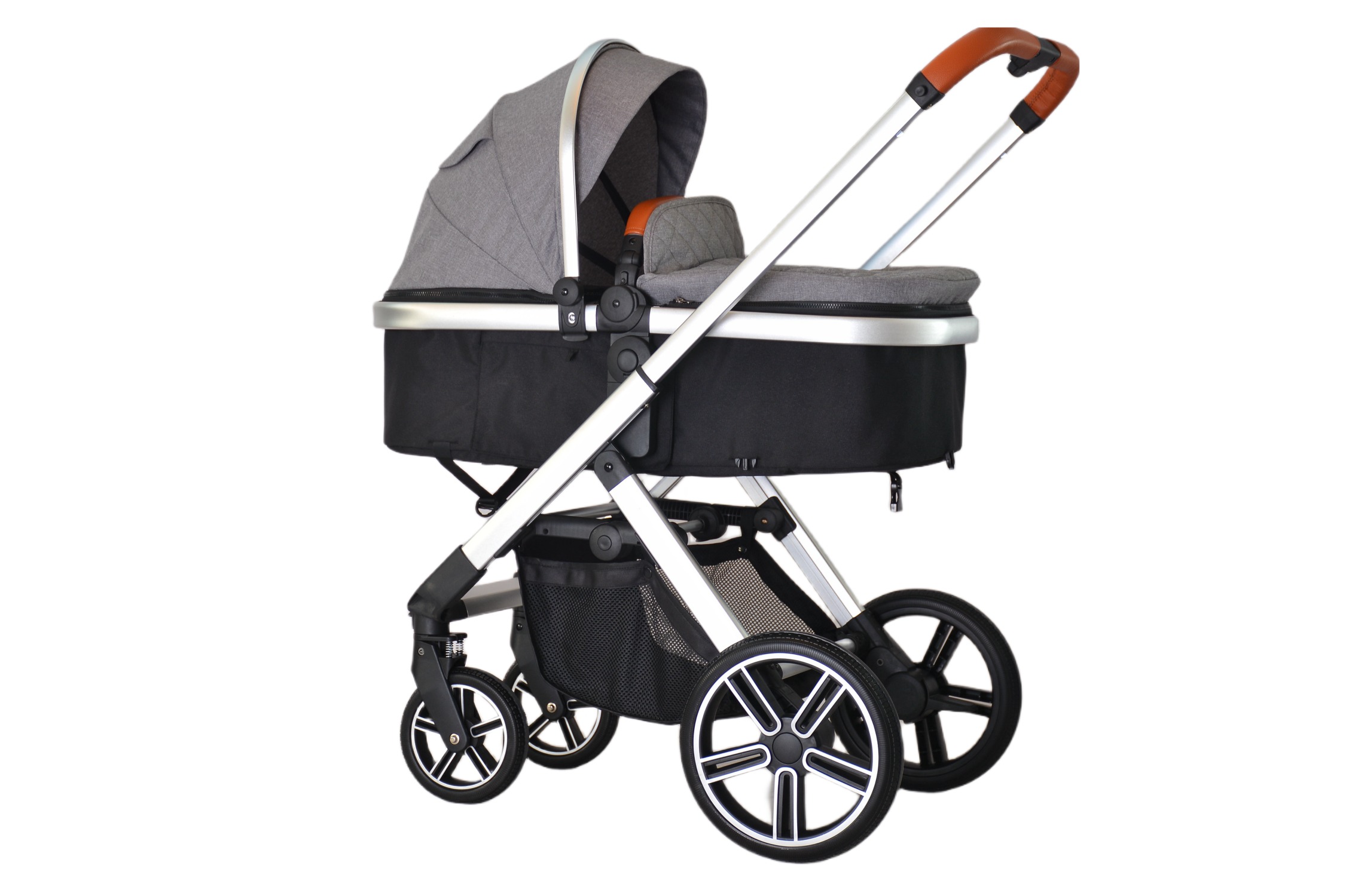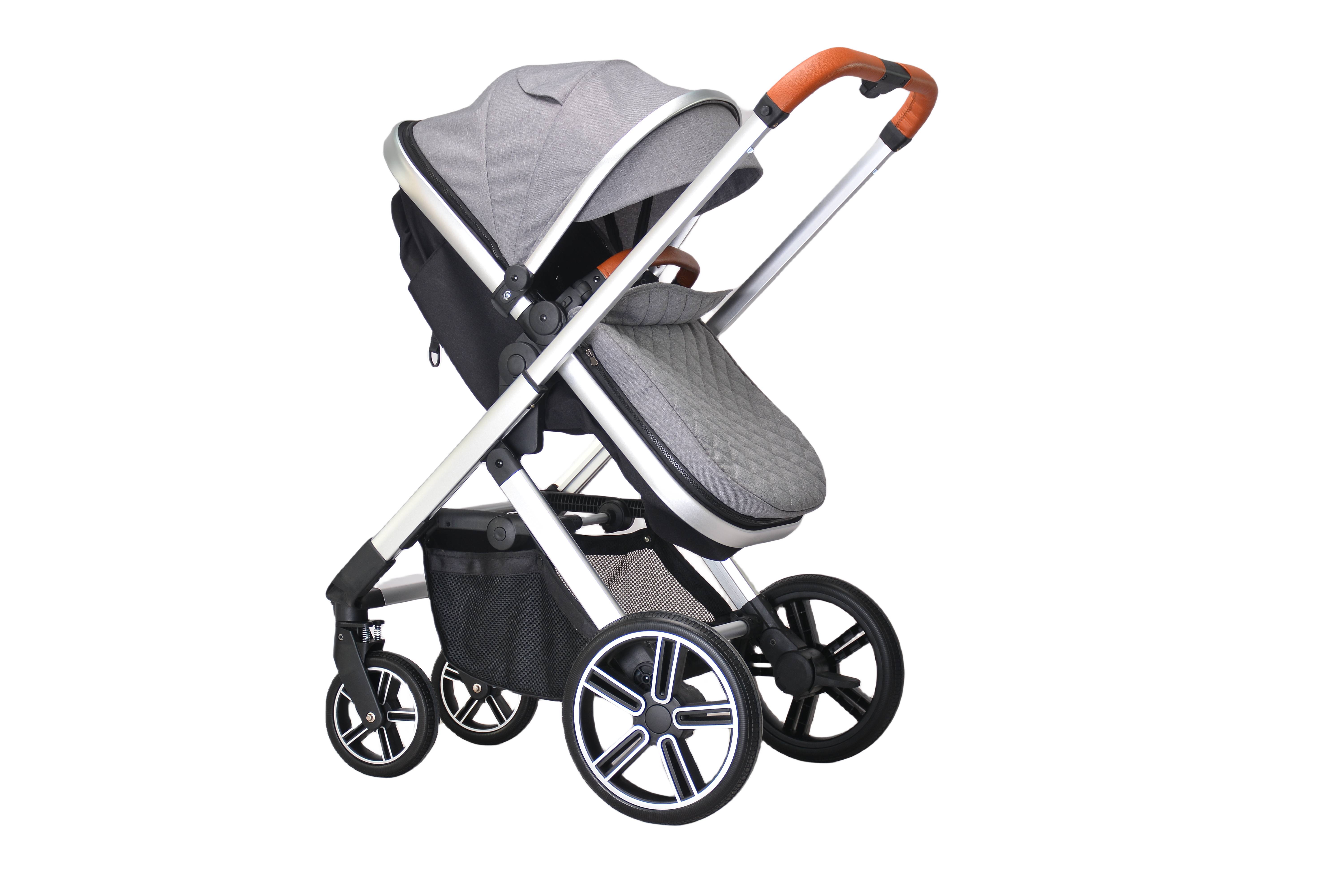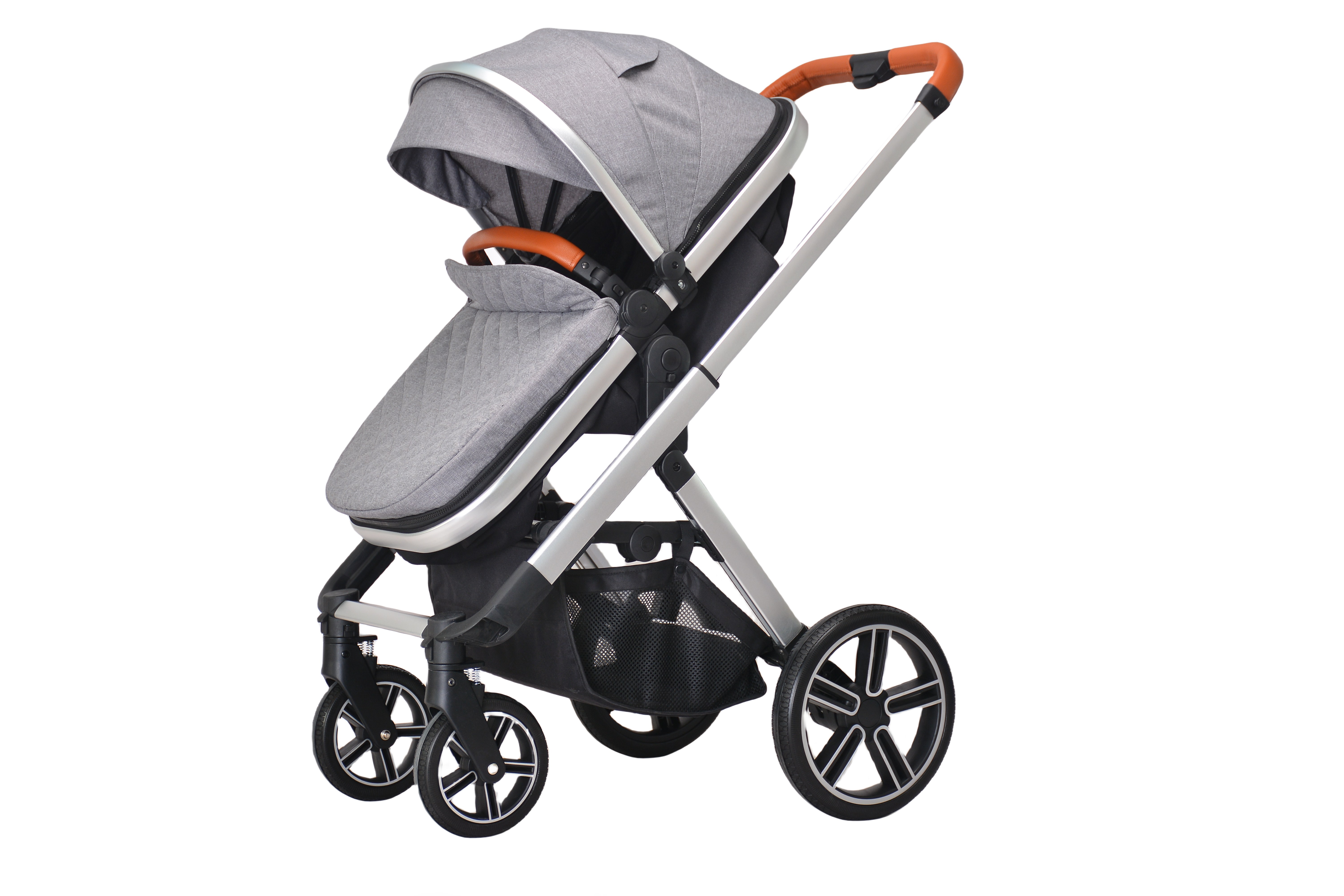 Features: Brake pipe with shock absorption, convertible bassinet, adjustable PU handle, PU handle bar, quilting foot cover, cup holder, wrist safety belt, mosquito net, cotton cushion