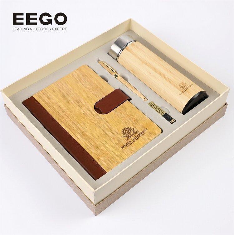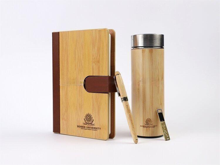 Luxury Executive Classic Wood Cover Notebook Corporate Gift Set With Pen And Bottle