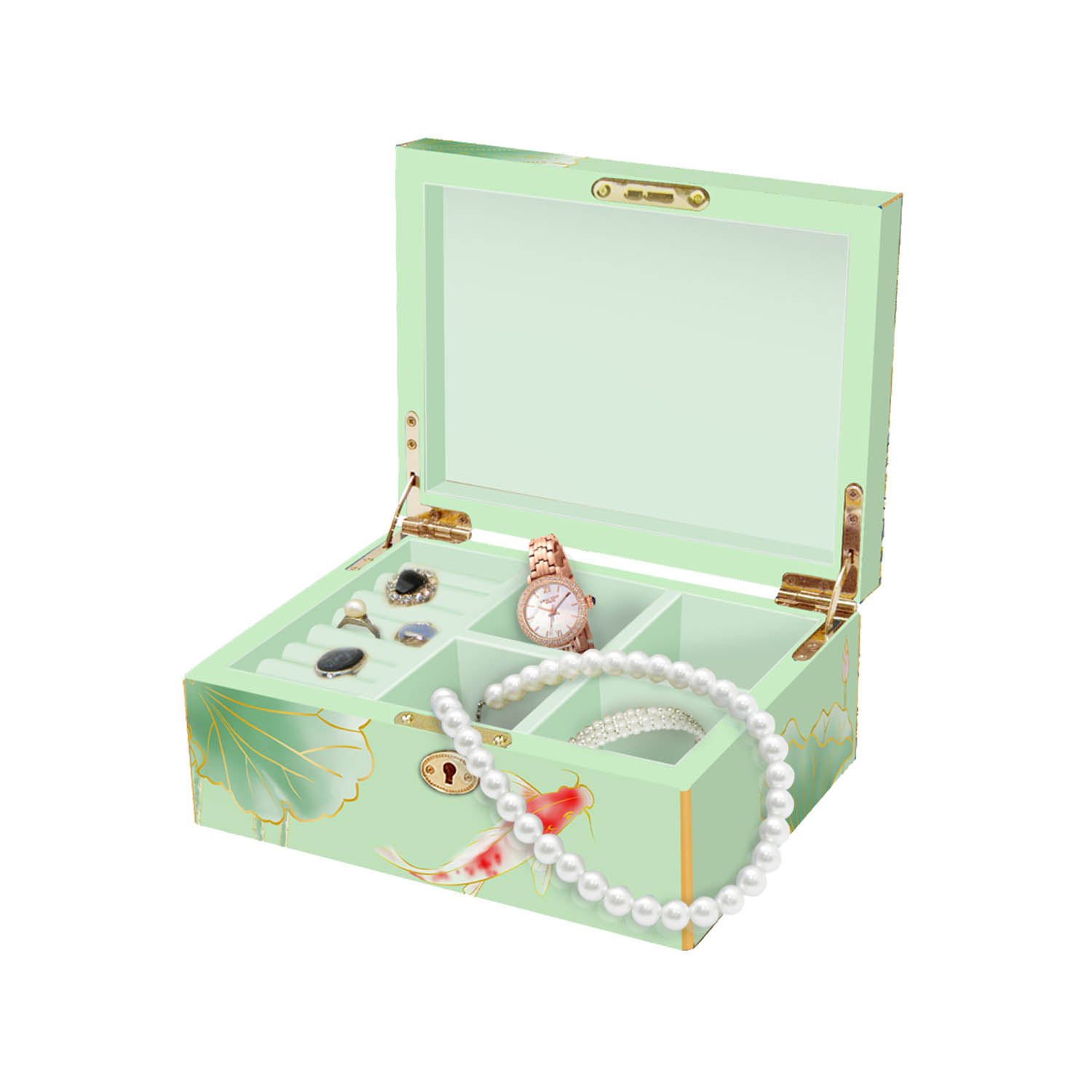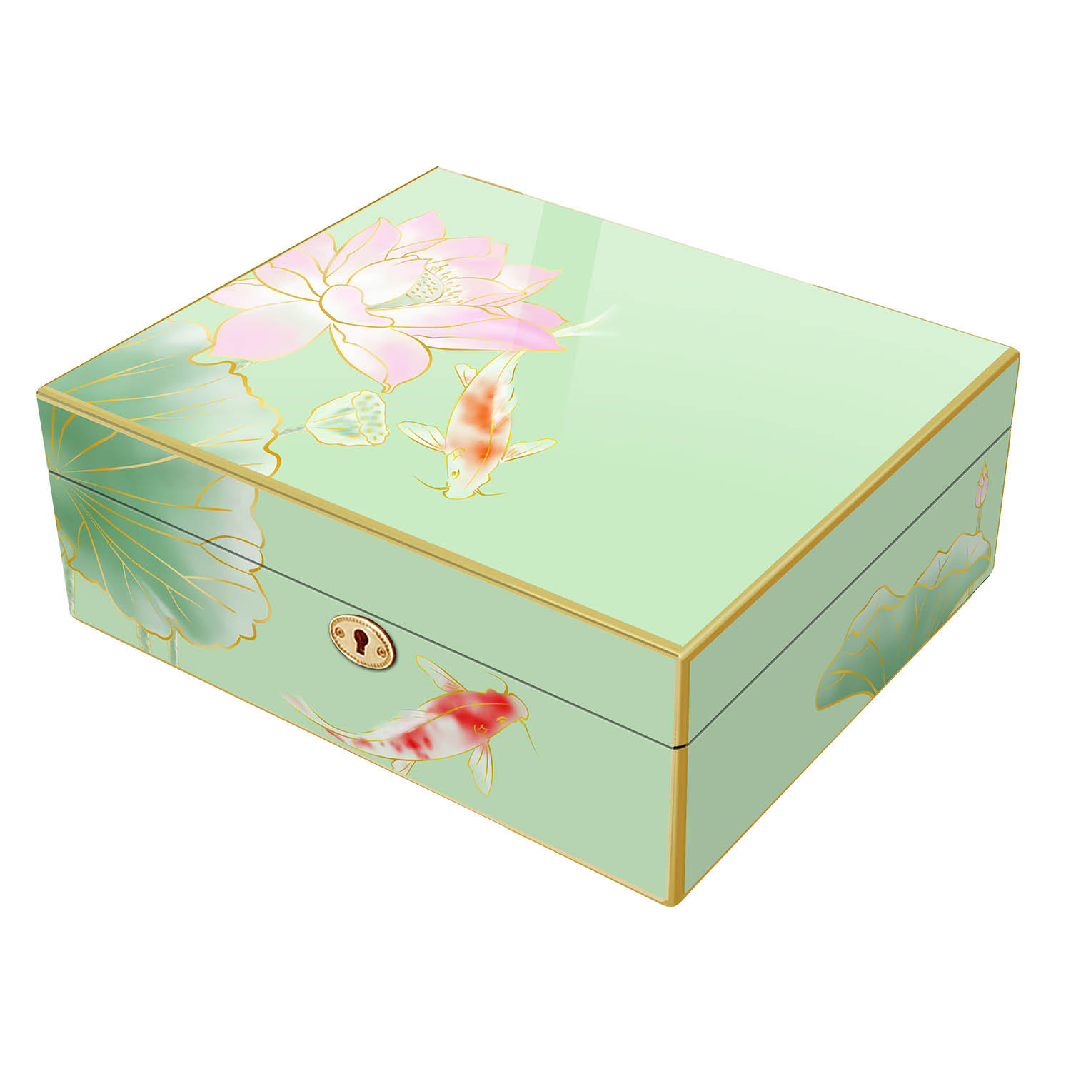 Luxury High Gloss Koi Lotus Jewelry Box-Mint