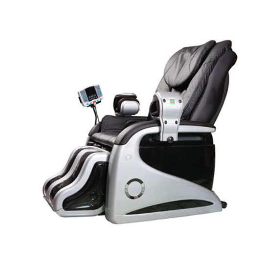 Displayed is a massage chair featuring a silvery and black finish. It is professionally designed to offer superior massage performance. Made of top grade materials, this massage chair offers a long service life.
