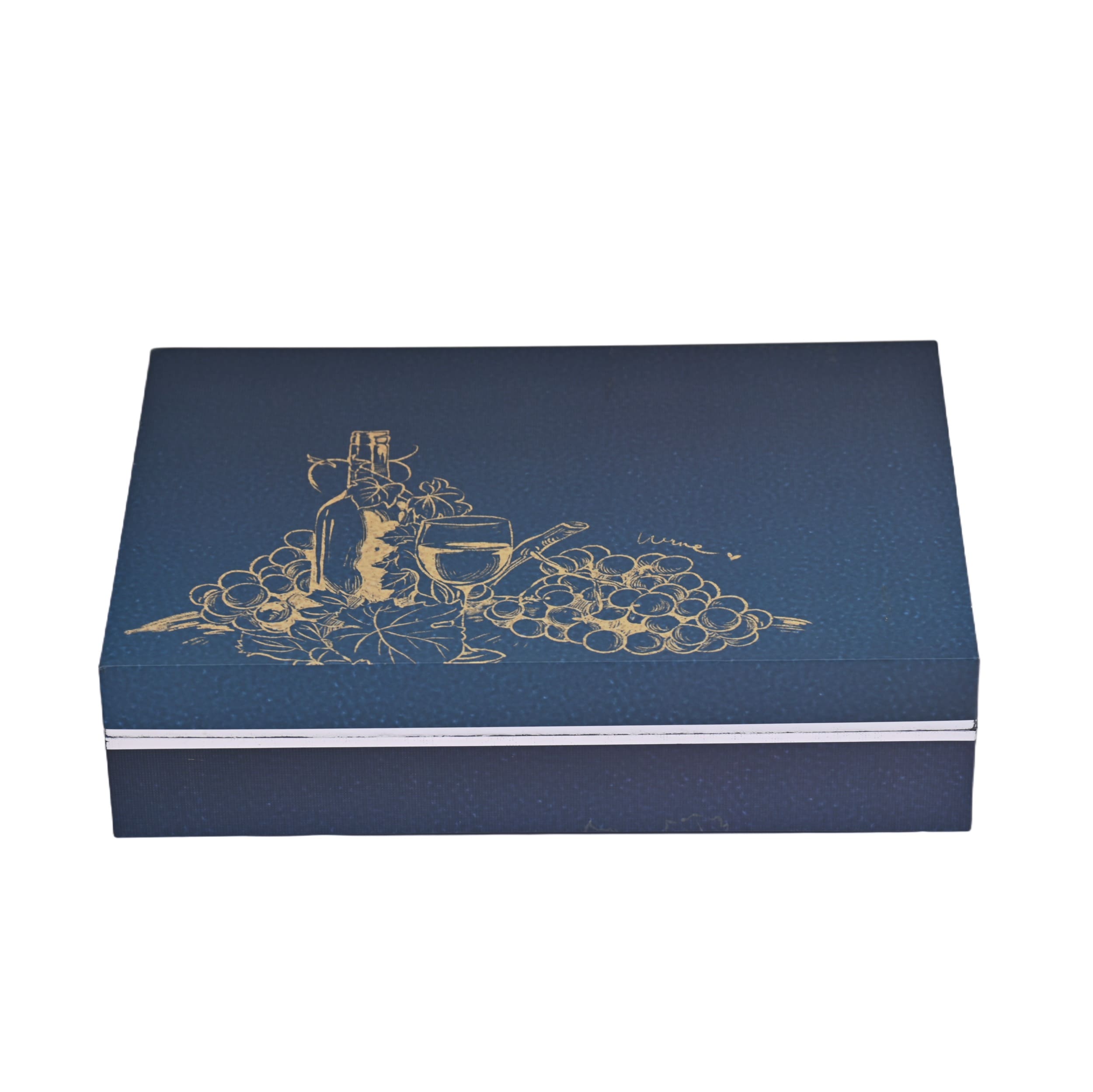Elevate your brand with Brothersbox's luxury video magnetic gift box. This premium navy box features elegant gold foil wine illustrations. Open the magnetic lid to reveal a vibrant red interior and a high-definition LCD screen. With integrated speakers and playback controls, it’s the ultimate interactive packaging for high-end gifts. Perfect for luxury wine or corporate promos.