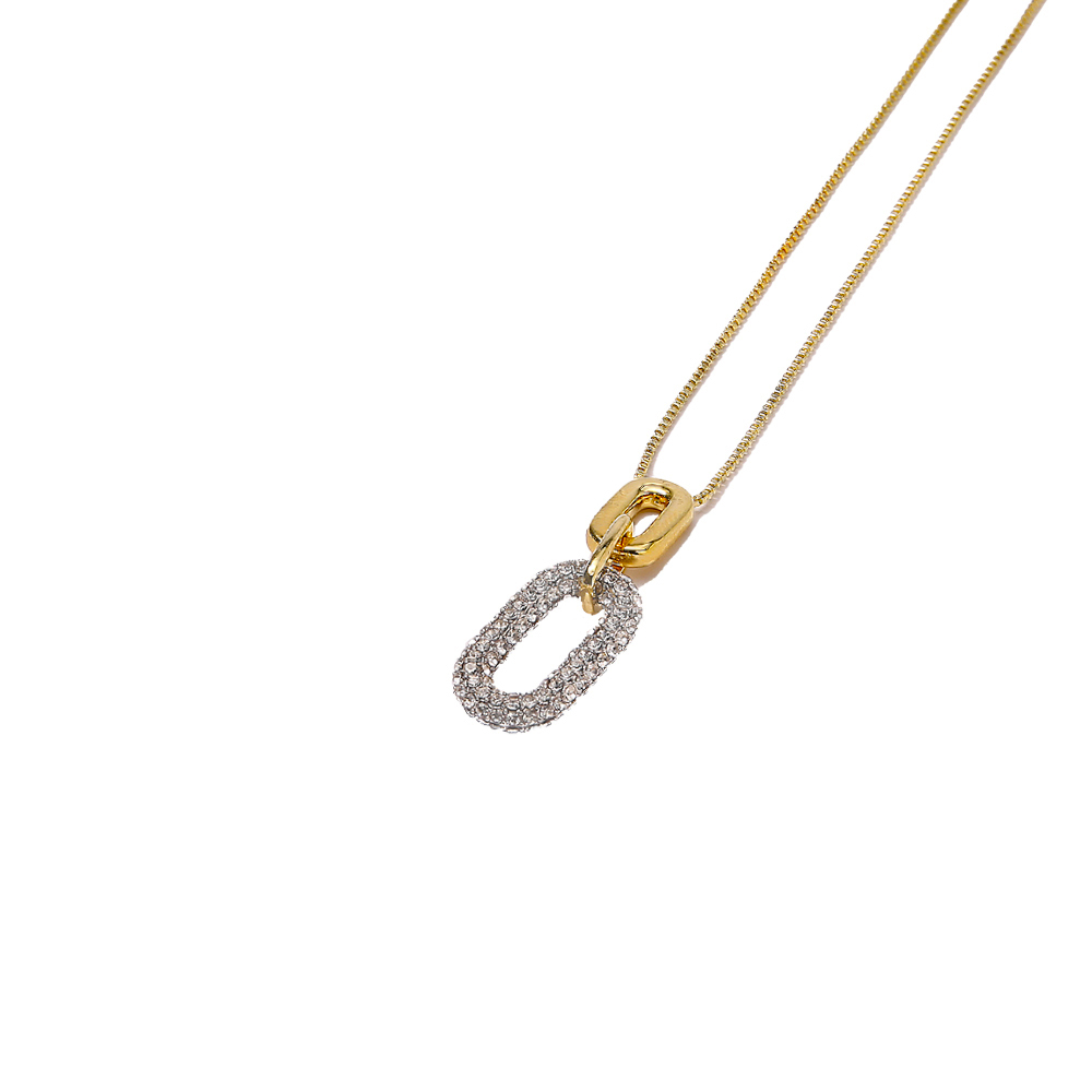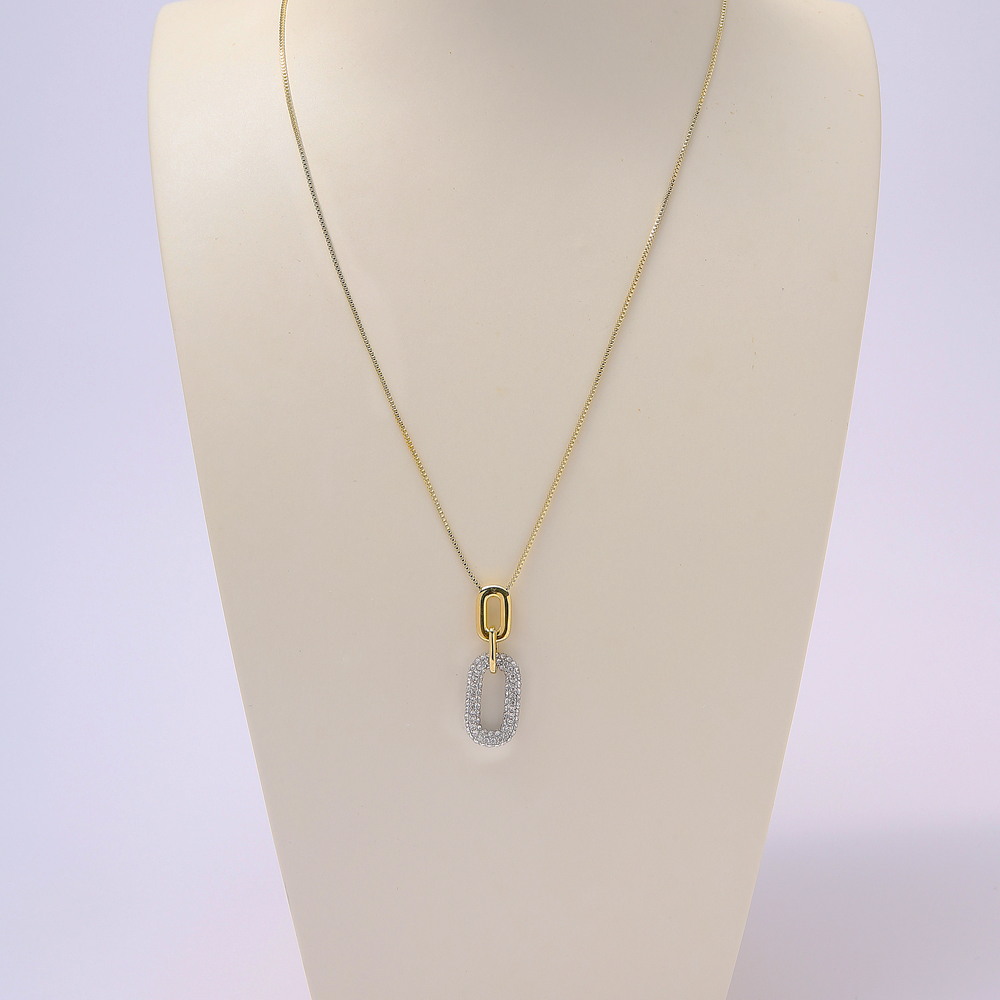 Luxury Women Jewelry Hollow Geometric Square Pendant Necklace Chunky Bi-Color CZ Stone Pendant Necklace Frame Necklace