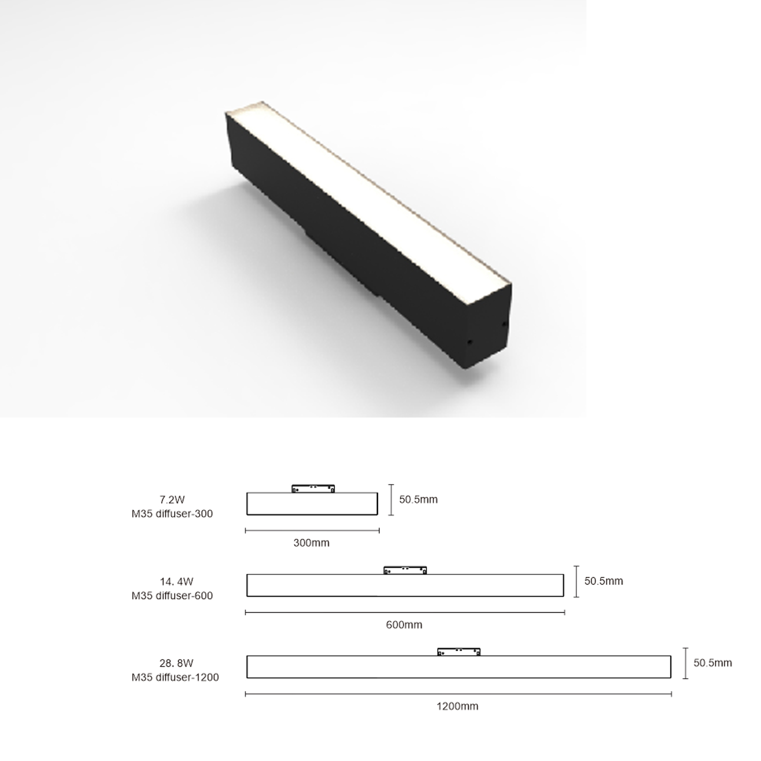 • Size: 7.2W(300×25mm) / 14.4W(600×25mm) / 28.8W(1200×25mm)