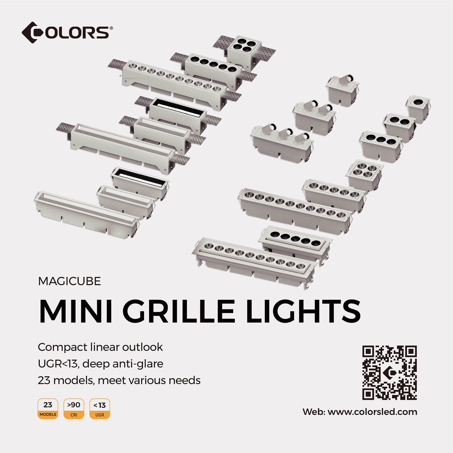 MAGICUBE mini grille light is delicate, compact, and of linear outlook. It includes 4 optics, including ±20° adjustable round grille, retractable spotlight, flood lighting, and wall washer and supports recessed, pre-recessed, and surface-mounted installation. It can achieve precise accent lighting, basic lighting, and wall-washing.