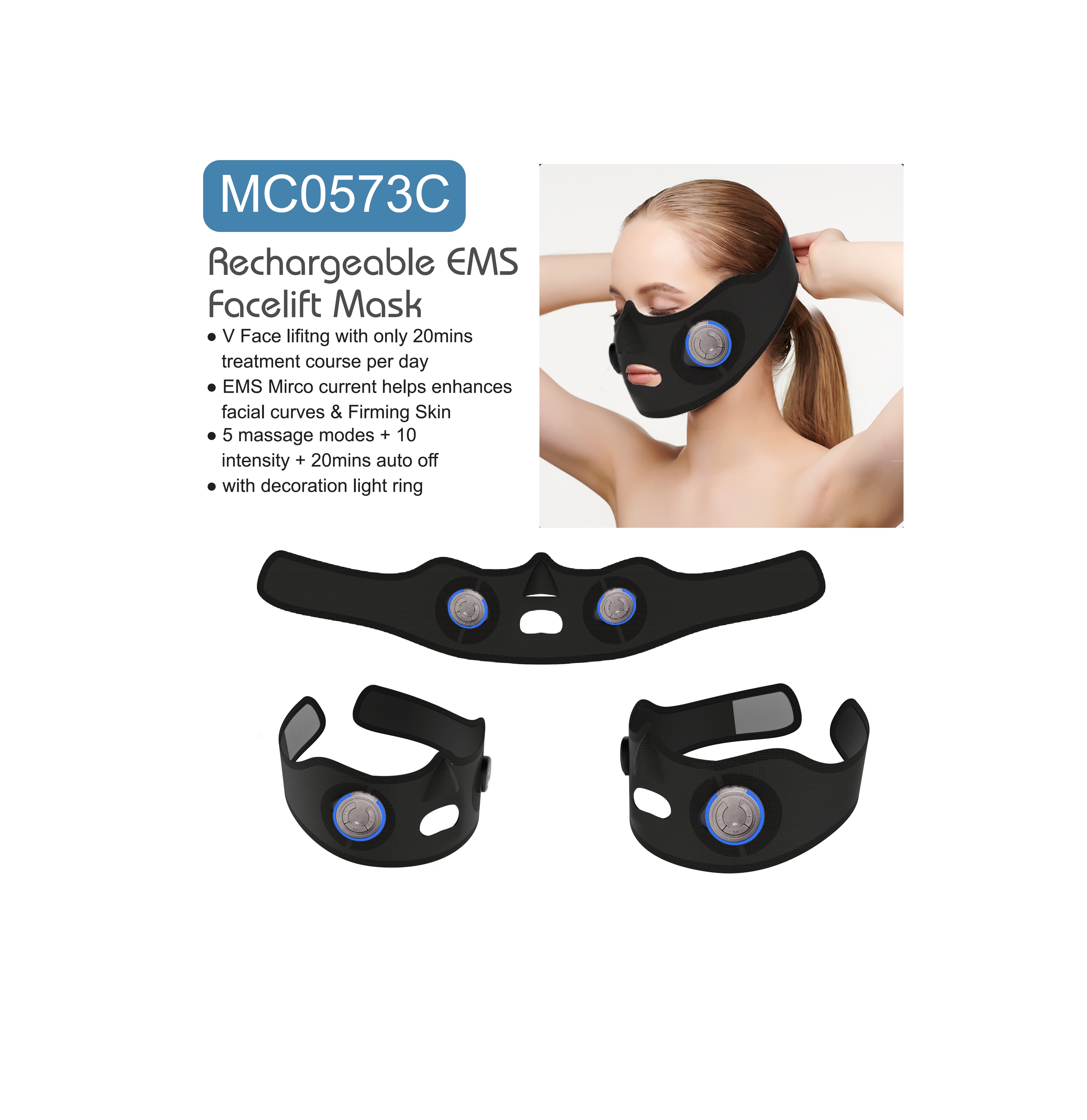 MC0573C - Rechargeable EMS FACELIFT MASK with decoration light ring