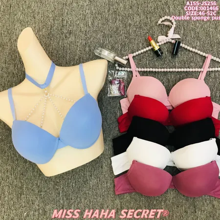 Enhance your curve with this MISS HANA SECRET double sponge push up halter bra! Featuring a trendy halter neck design (with delicate pearl detailing) and thick double-sponge cups, it delivers targeted lift and a flattering silhouette—perfect for adding confidence to any outfit.