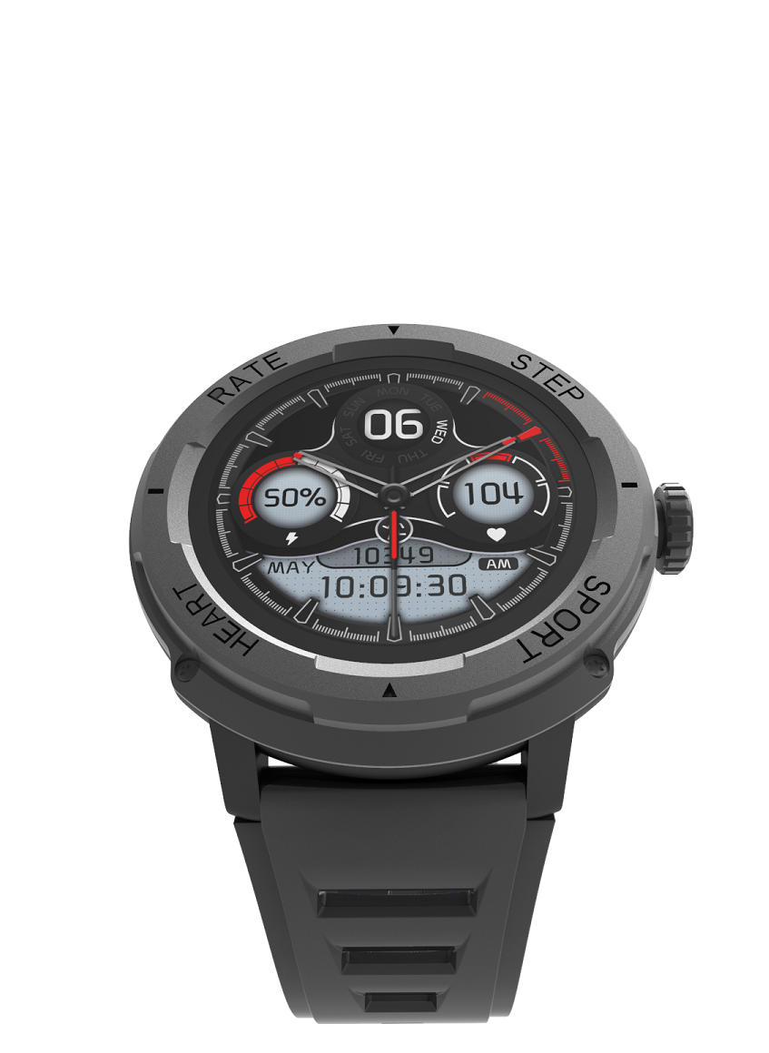 IP67 waterproof Single-chip 1.39 inch HD Color screen with rotary encoder, using magnetic charging can change multi-languages, BT calling and BT music control, health monitor, and Multiple sports modes
