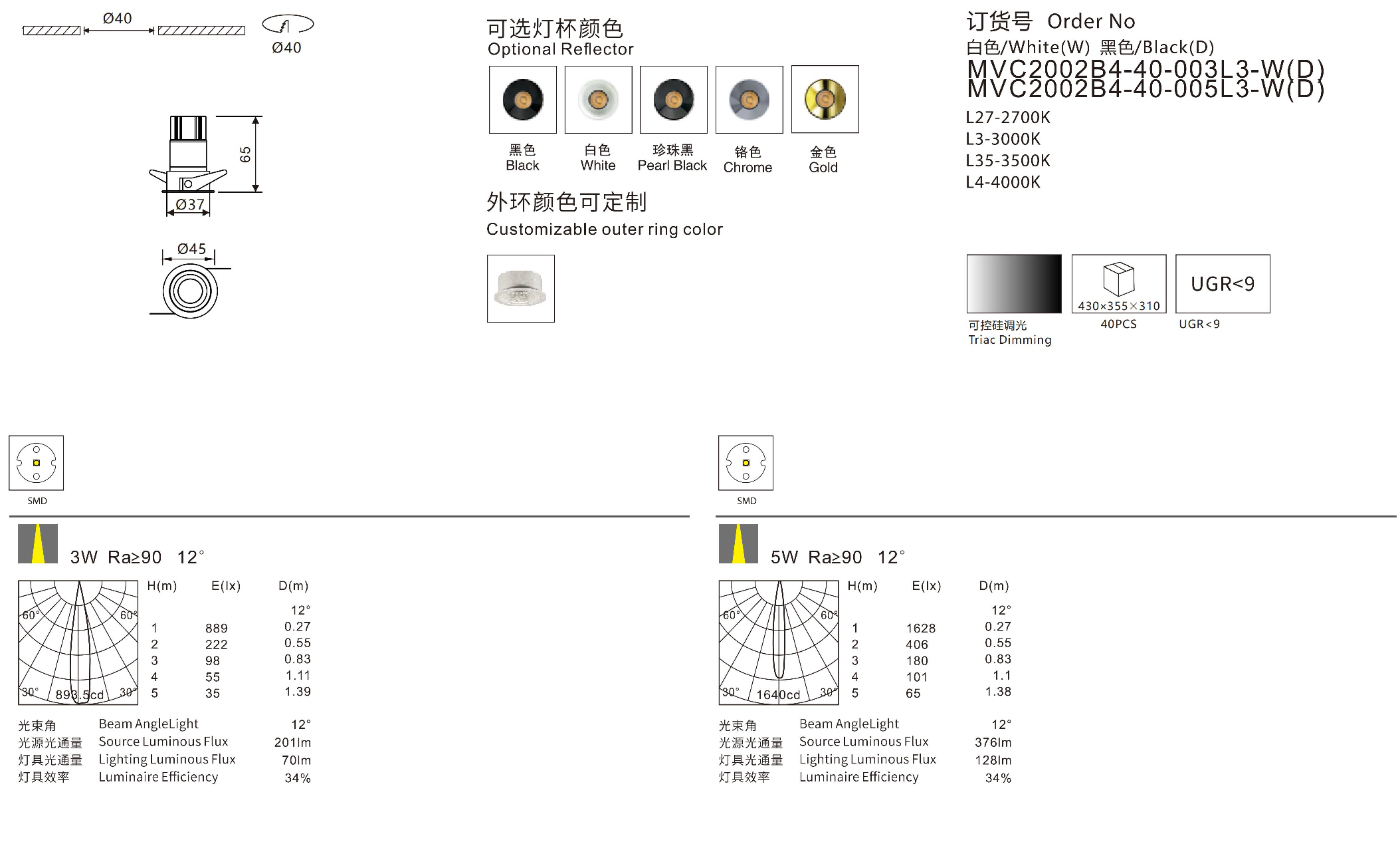 开孔: Φ40mm