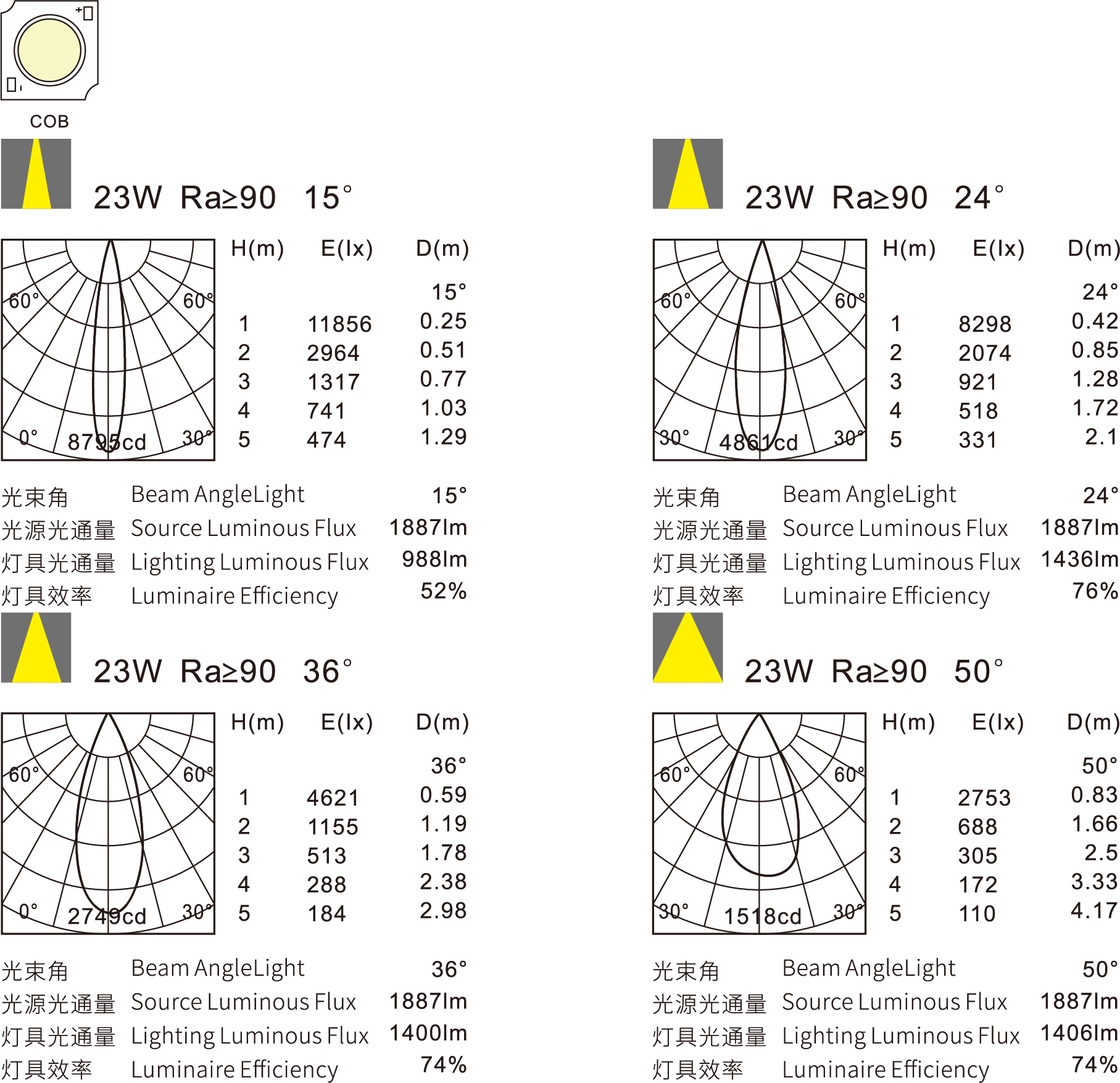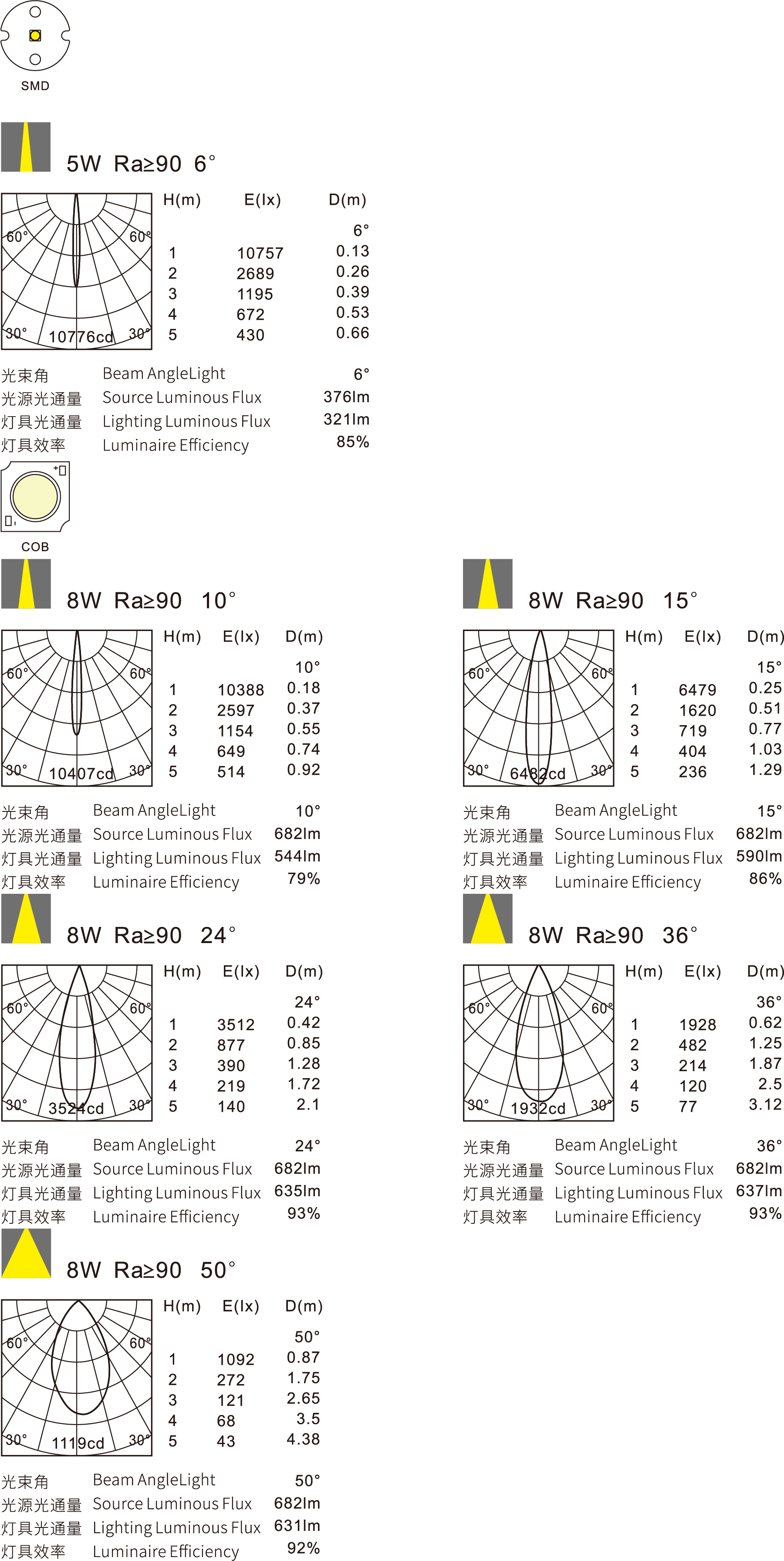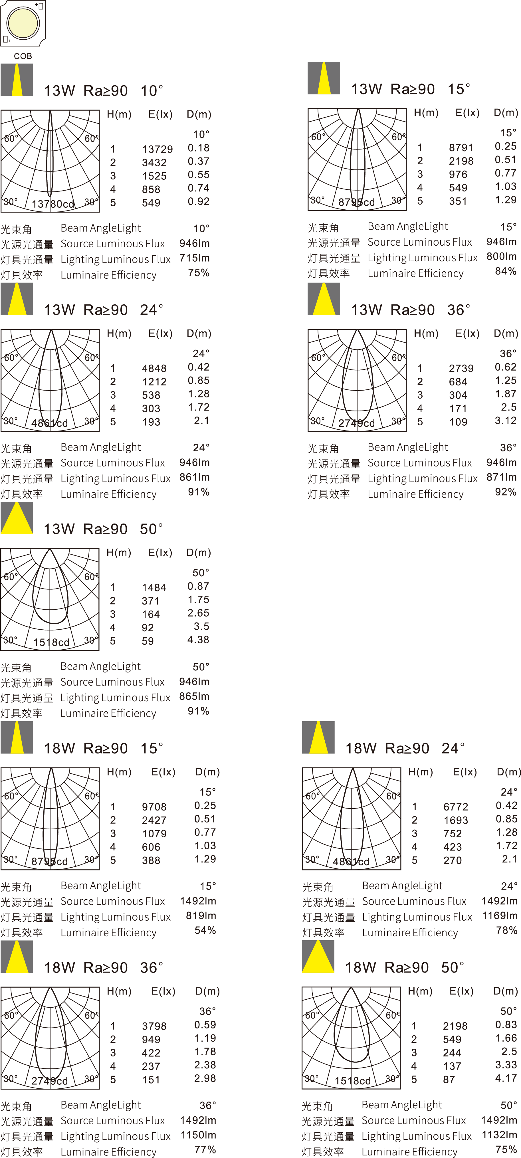 功率: 5W/8W/13W/18W/23W/28W色温: 2700K/3000K/3500K光束角: 6°, 10°, 15°, 24°, 36°, 50°