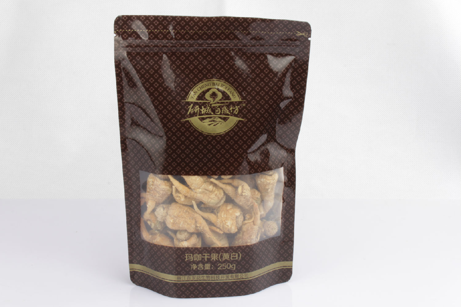 Maca is rich in vitamin B vitamins, C, and E. It provides plenty of calcium, zinc, iron, magnesium, phosphorous and amino acids. It has been called “Peruvian ginseng”. Maca’s benefits have been long valued, and this would be a healthy snack.