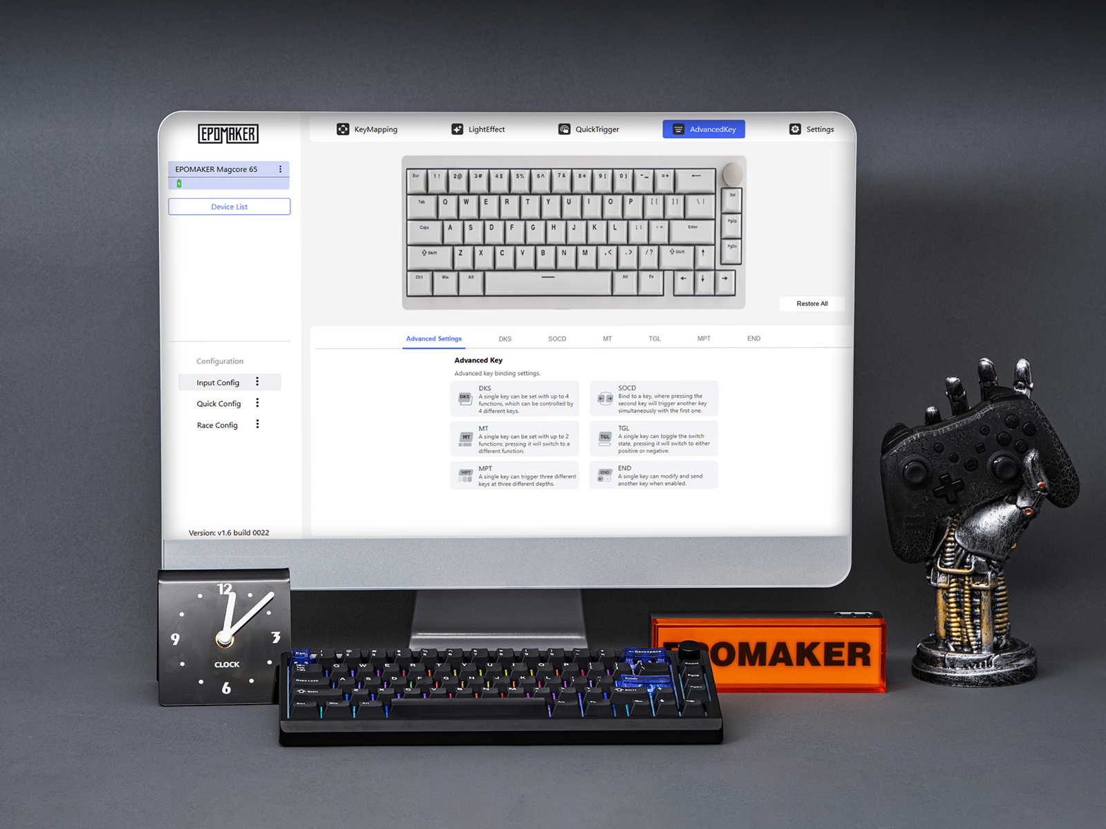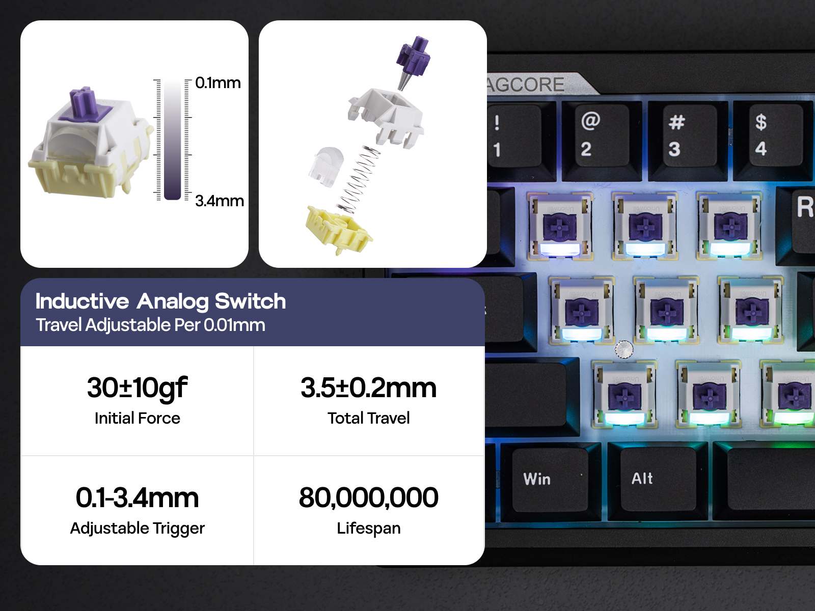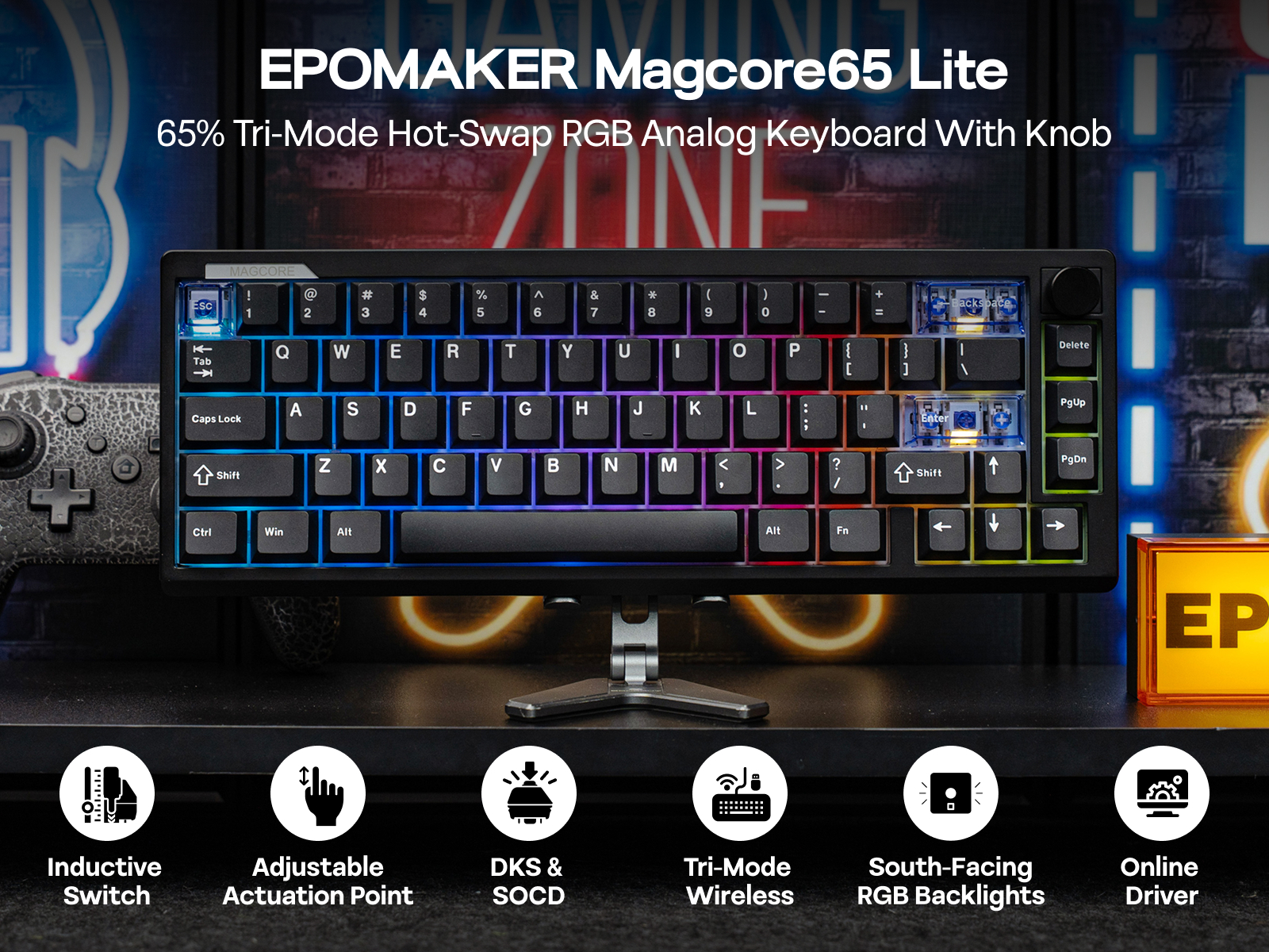 Introducing Magcore65 Lite Analog keyboard that combines the advantage of hall effect and mechanical keyboard, in sound-dampened Gasket-Mount structure, with powerful features like adjustable actuation, SOCD and DKS.