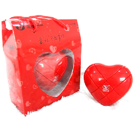 This red magic cube highlights a heart-shaped design. The toy requires different moves to be twisted into the original appearance. Get your love complete and perfect with this hearty magic cube.