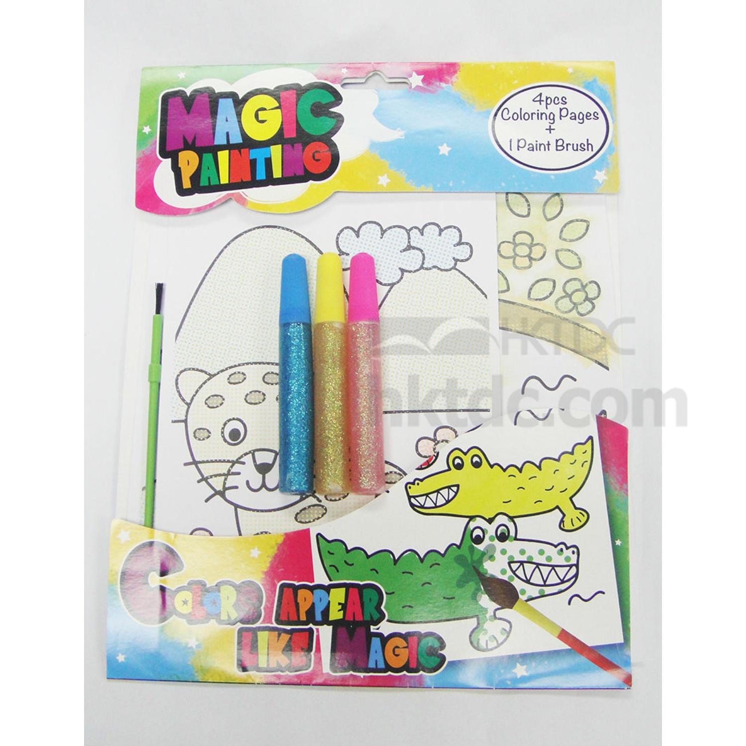 Magic paint, 3 pcs glitter glue and a4 size paper.