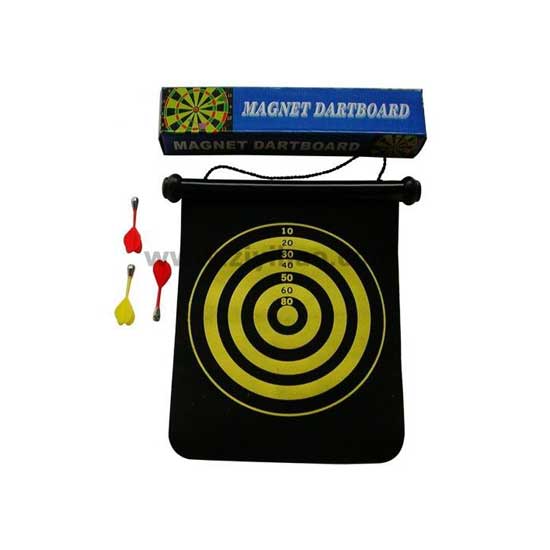 This dartboard unrolls to reveal a target area with standard graphics. The magnetic board features all the challenges and fun of regular darts without hazardous metal tips. This magnetic dartboard is sure to suit your bull's-eye.