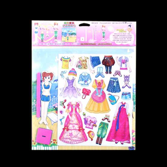 Displayed is a magnetic dress-up game that comes with a girl figure and various colorful clothes. This game lets girls know more about clothes and ornaments. They can learn how to choose a dress appropriately for any occasion.