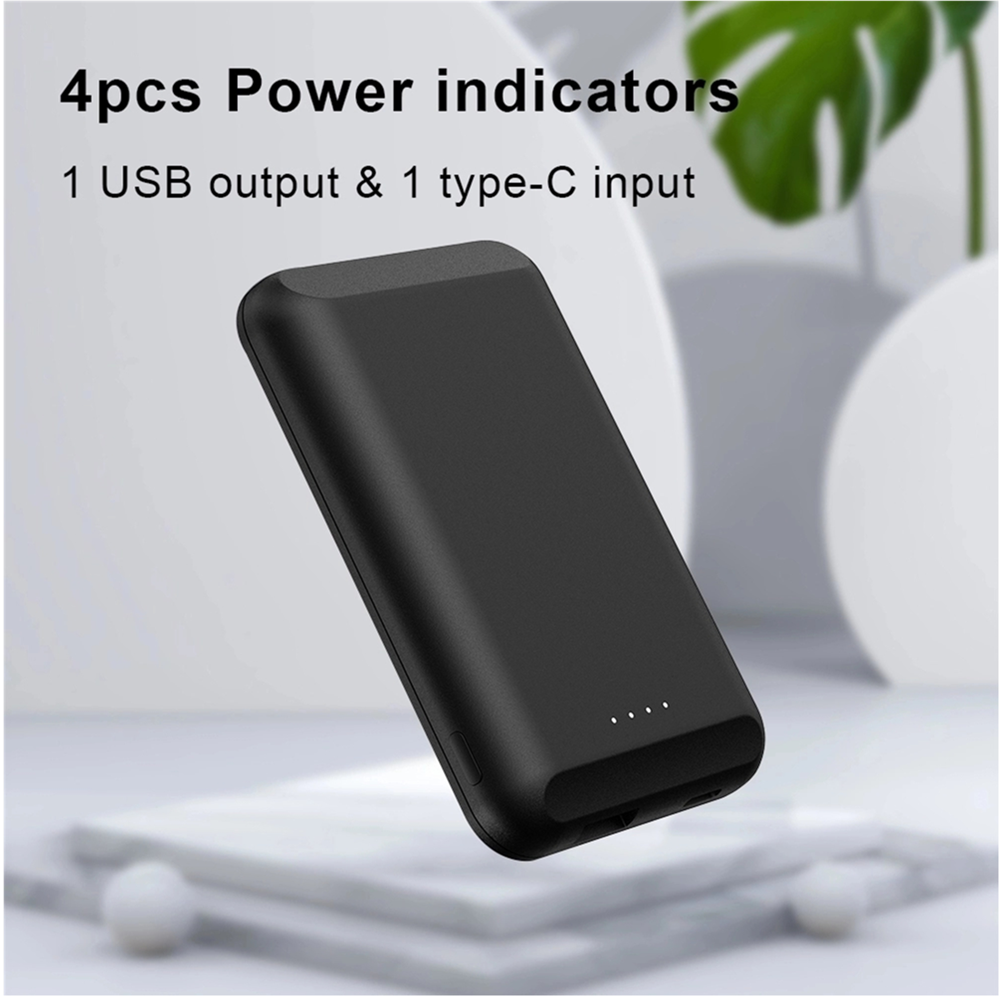 Magnetic Portable Wireless 5000mAh Power Bank Black