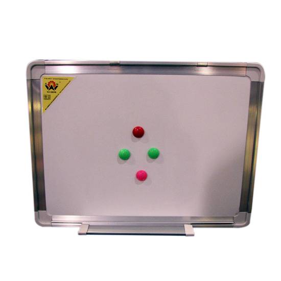 This is a magnetic white board that has an aluminium frame. Besides writing on the white board, the magnetic feature allows you to post your little notes on it with magnets. There is a small plate below where you can put your magnets and pen on it. It is a good office equipment for writing reminders.