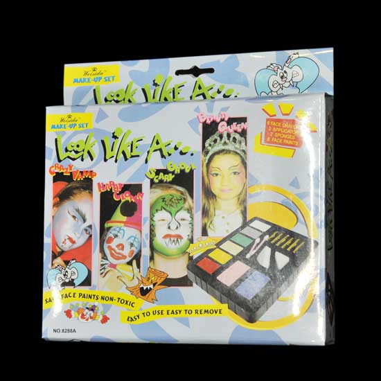 This make up box comes with 8 face paints, 8 crayons, 2 applicators and 2 sponges. It allows you to apply face paints to imitate a crazy vampire, a happy clown, a scary ghoul and a beauty queen. The face paints are non-toxic and easy to remove.