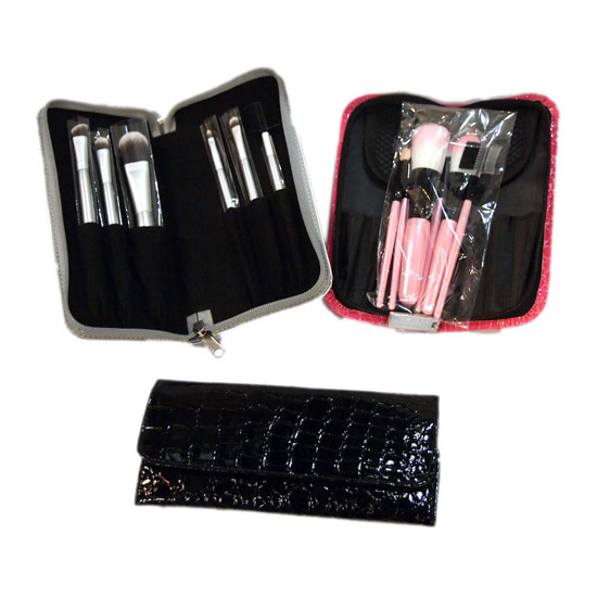 5pcs makeup brush set with a PVC leather pouch. Material of burshes: Nylon hair + aluminium tube + plastic handle Size of the whole set: 20*8*2cm