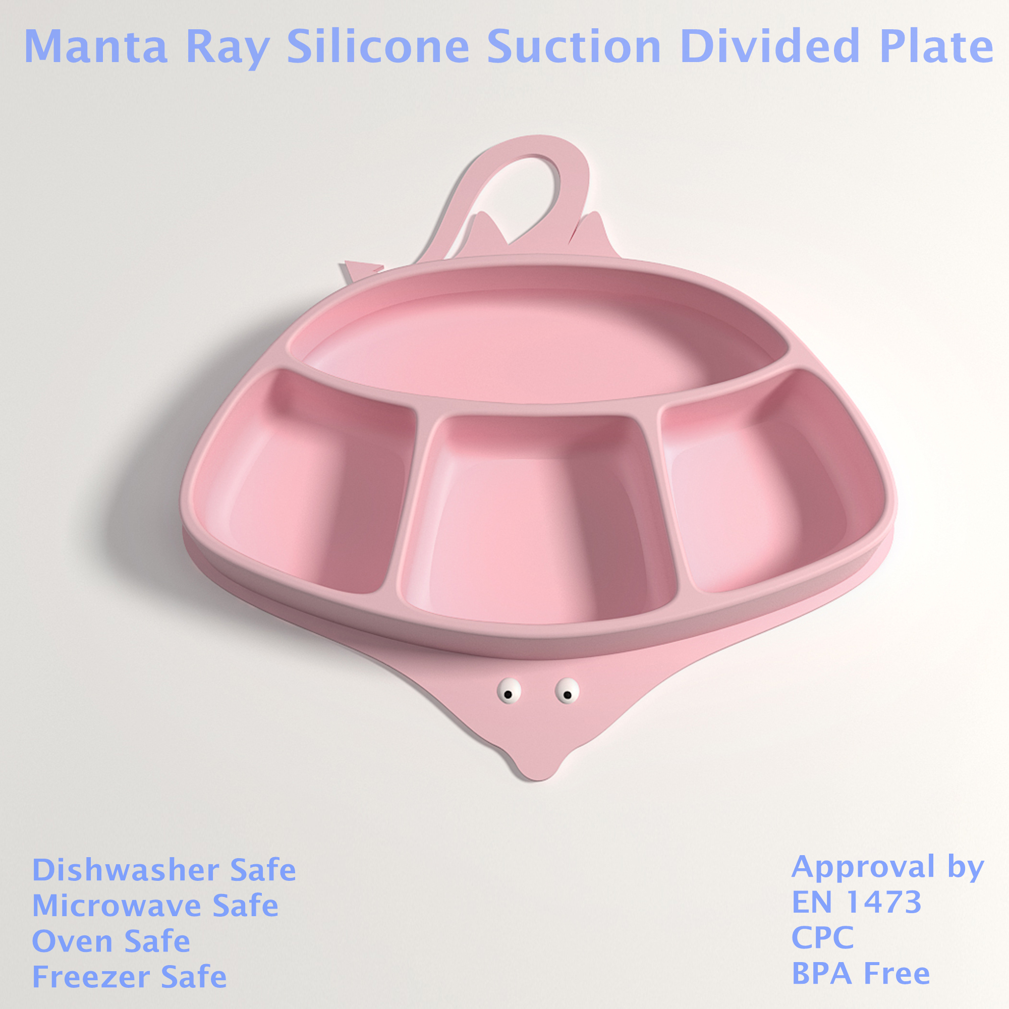 Payment method: 15-20% deposit before production, balance could be paid by D/A or O/A 30-90 days. We accept 30-180 days after shipment payment. 100% Food grade silicone, Manta Ray design and Unique oval design. Applied to dishwasher, microwave, oven, freezer. Easy to clean, and there won't be any lingering odor. After cleaning and disinfecting, the tail of the Manta Ray can be hung in any ventilated, dry place for storage using its unique design. Its special design for bottom suction on the surface of table or tray of baby, can be strong enough to stay the plate pull off or slid away after finish baby dinner, easy take it off from the table.