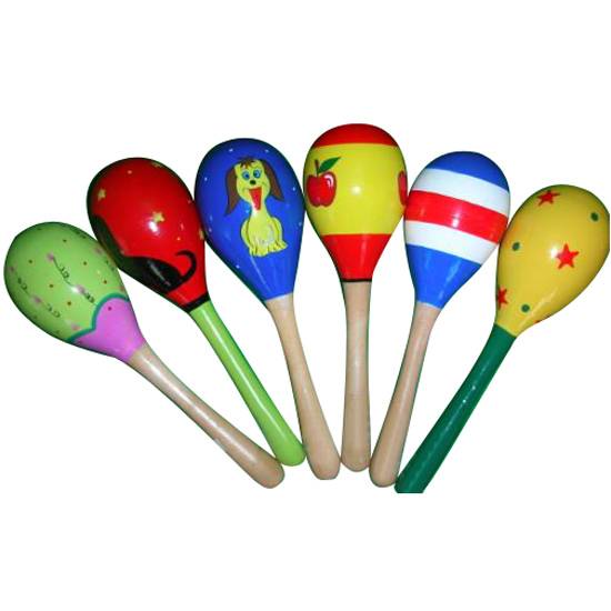 The wooden maracas feature colourful pictures. Pictures such as apples, dogs are especially attractive for kids. The maracas can also serve as simple musical instruments, which are very interesting tools for kids to learn music with. They are a good choice for gifts as well.