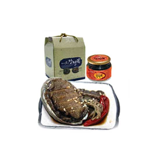 This marinated abalone is made of a live abalone mixed with a patented sauce of natural ingredients and soy sauce for an hour. It features a chewy texture and a pleasant and rich taste. This delicious marinated abalone makes an ideal gift for relatives and friends.