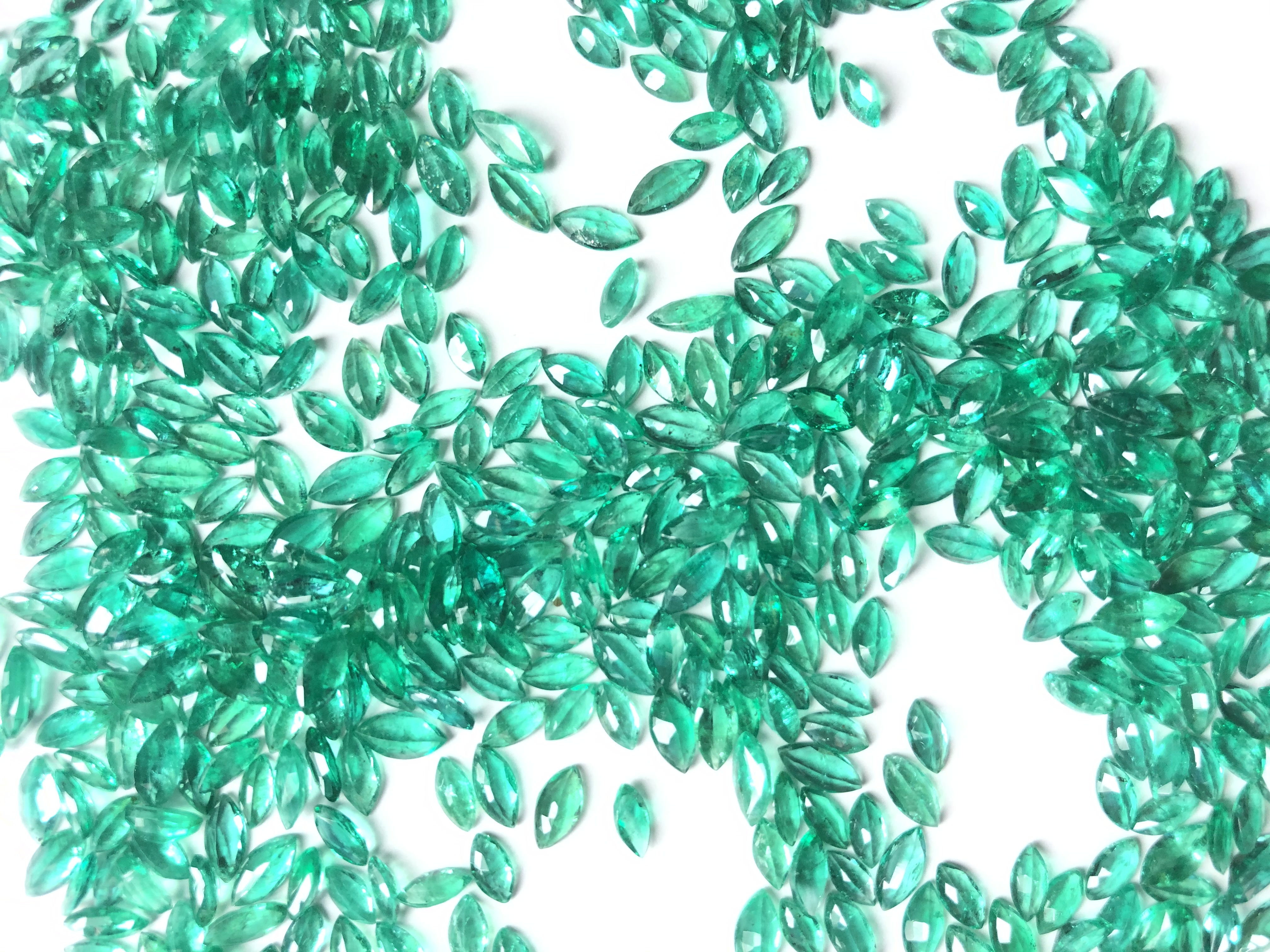 Showcased here are emeralds which are delicately treated. These emeralds are from Zambia and all the pieces are calibrated.