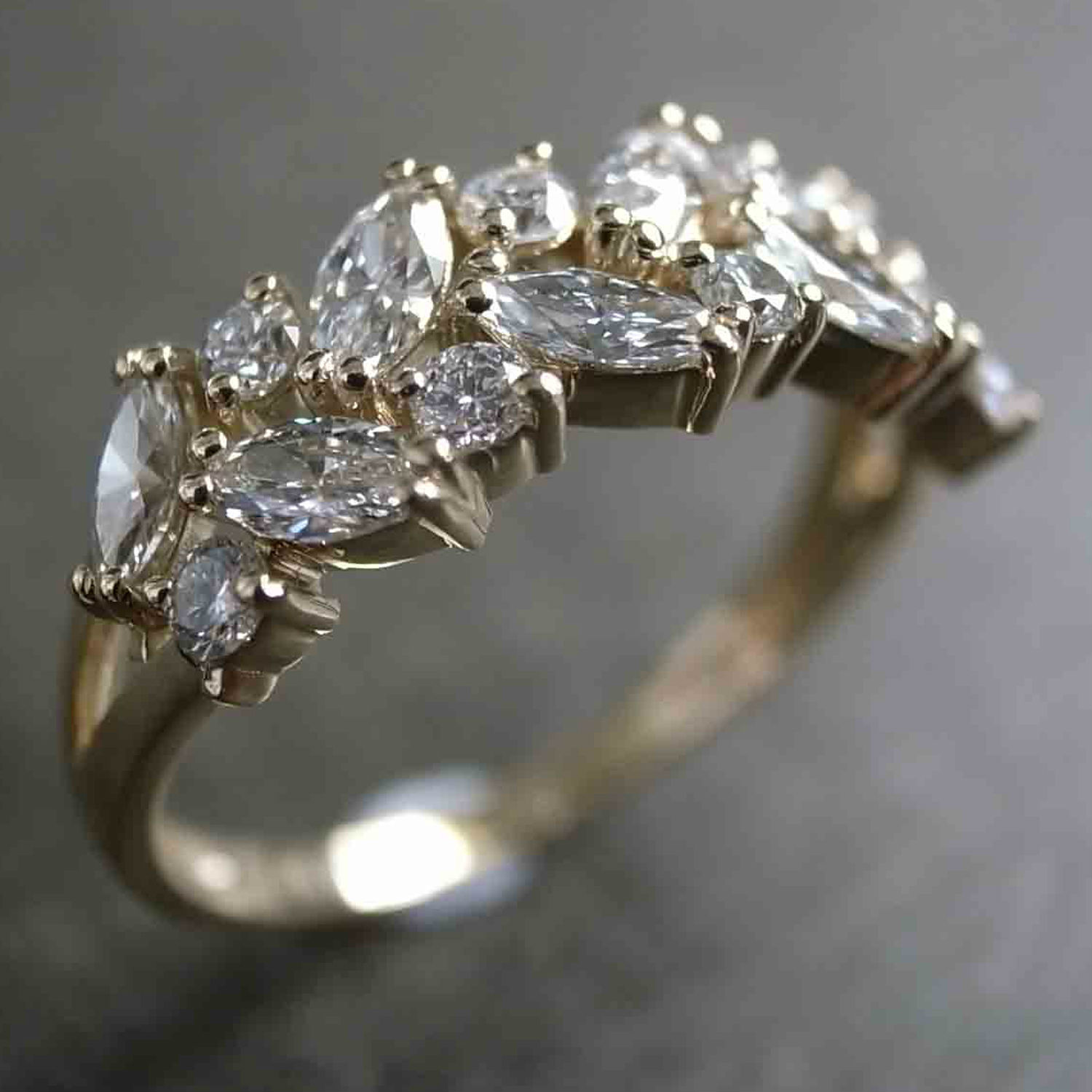 Inlaid with 8 marquise-shaped diamonds and 8 round brilliant-cut diamonds.