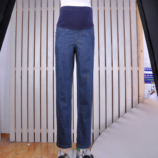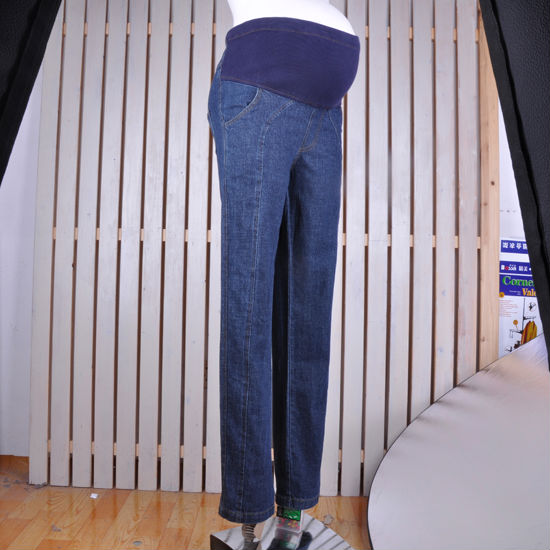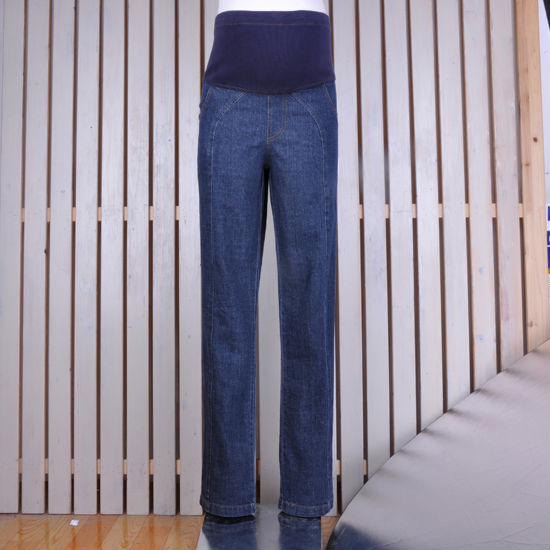 These petite, boot-cut maternity jeans feature an elastic belly panel, 4-pocket styling and back pockets. Whiskering at front. Worn spots at edges and mild distressing throughout.