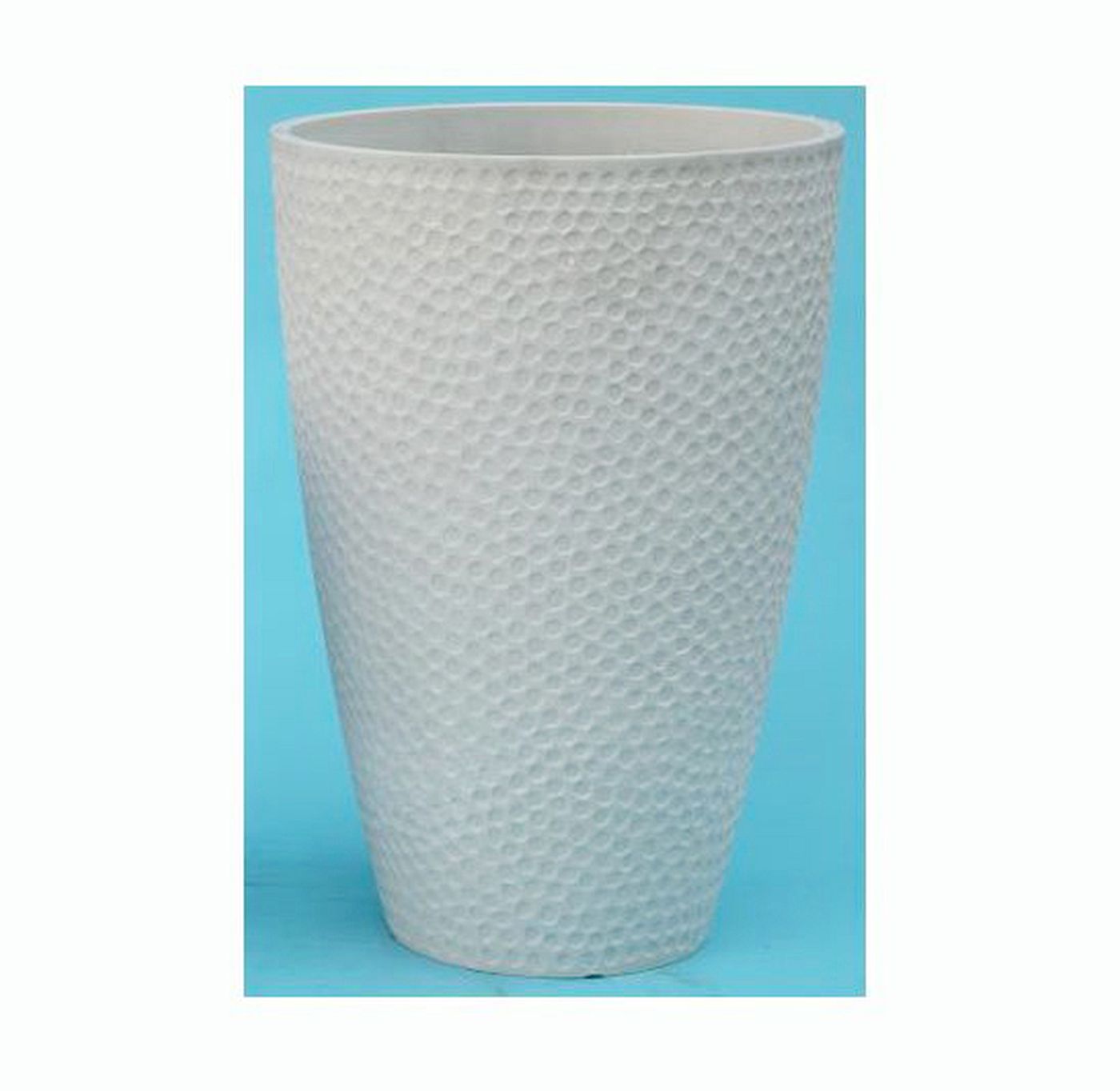 As shown is a high quality matt round curved pot with stone powder, recycled plastic and wood fiber material.