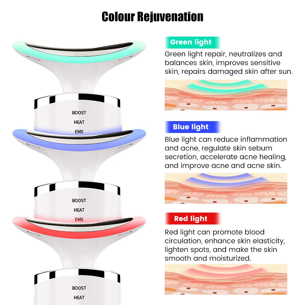 Three vibration modes, 45°C heating, suitable for blue light, green light and red-light therapy.
