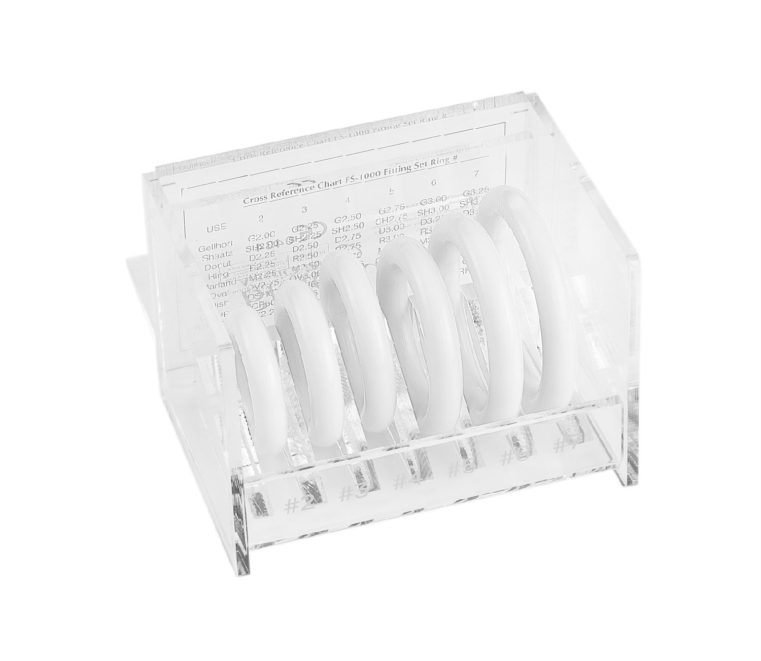 Packaged in an attractive case, the set includes six popular Ring pessaries and an embossed cross-reference chart to use in selecting the appropriate pessary. One set can be used for multiple patients because the latex-free rings can be sterilized. Methods for cleaning are included with every Pessary Fitting Set.