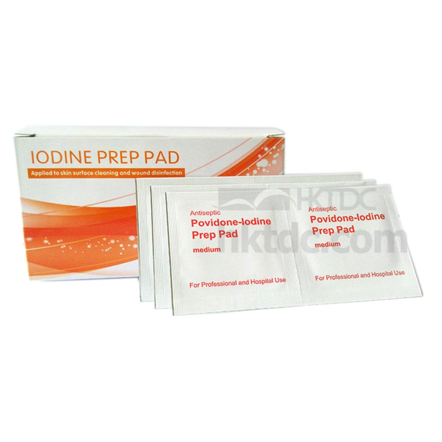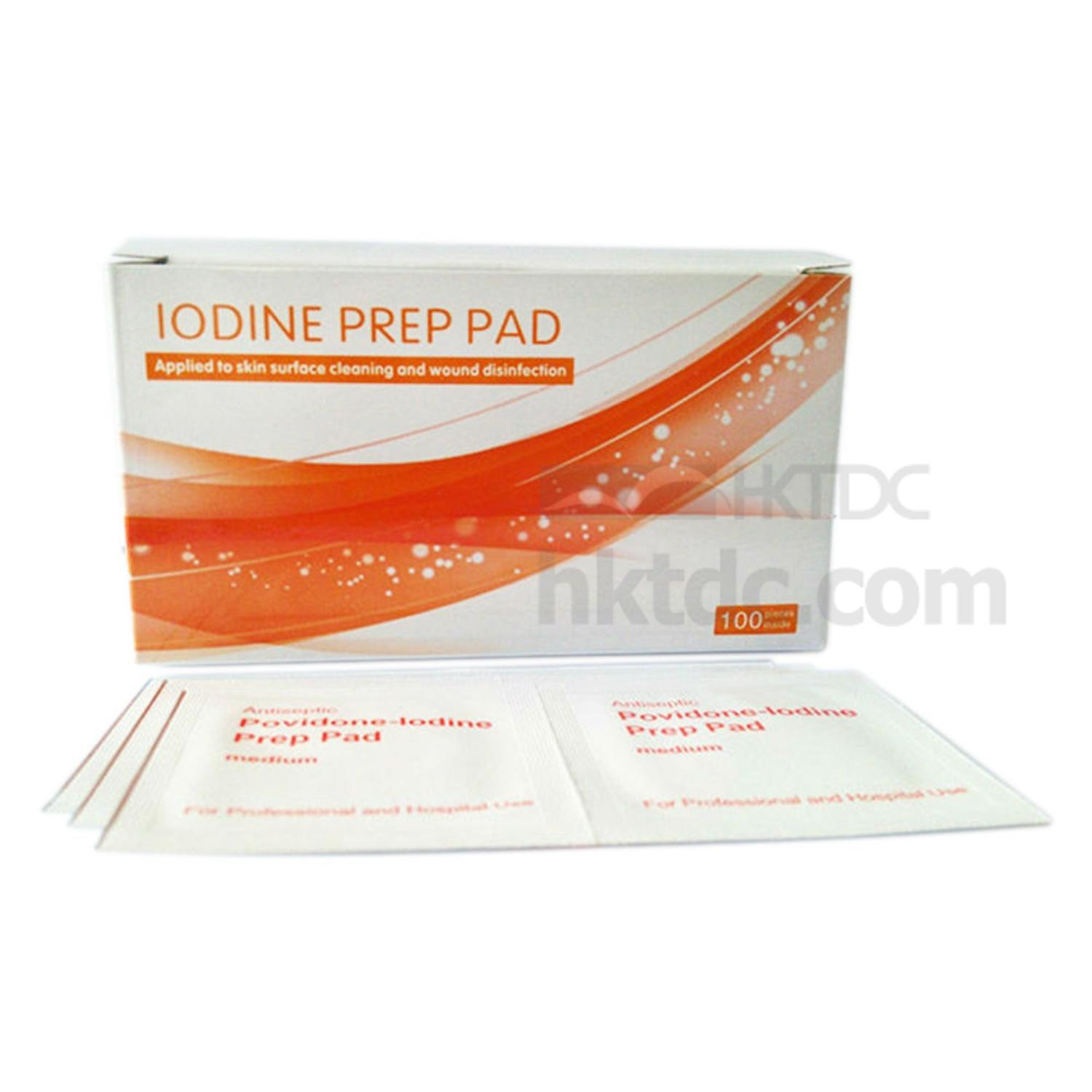 One prep pad saturated with a 10% povidone - Iodine solution equivalent to 1% available iodine.