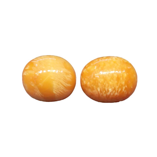 These are paired melo pearls coming in an orange color. They are carefully polished for high luster. They are a perfect companion for your luxurious necklaces and rings.