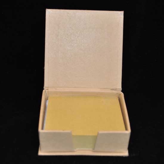 The memo pad is well secured in a holder with a top lid. It is made of recycle paper for better preservation of the environment. This memo pad makes a versatile addition on your desk.