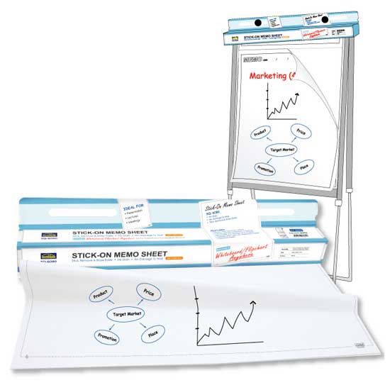 Pictured are memo sheets that highlight a stick-on property for enhanced convenience. They can be easily adhered to whiteboards, flipcharts or anywhere with a smooth surface. Present your draft ideas with ease now with these stick-on memo sheets.