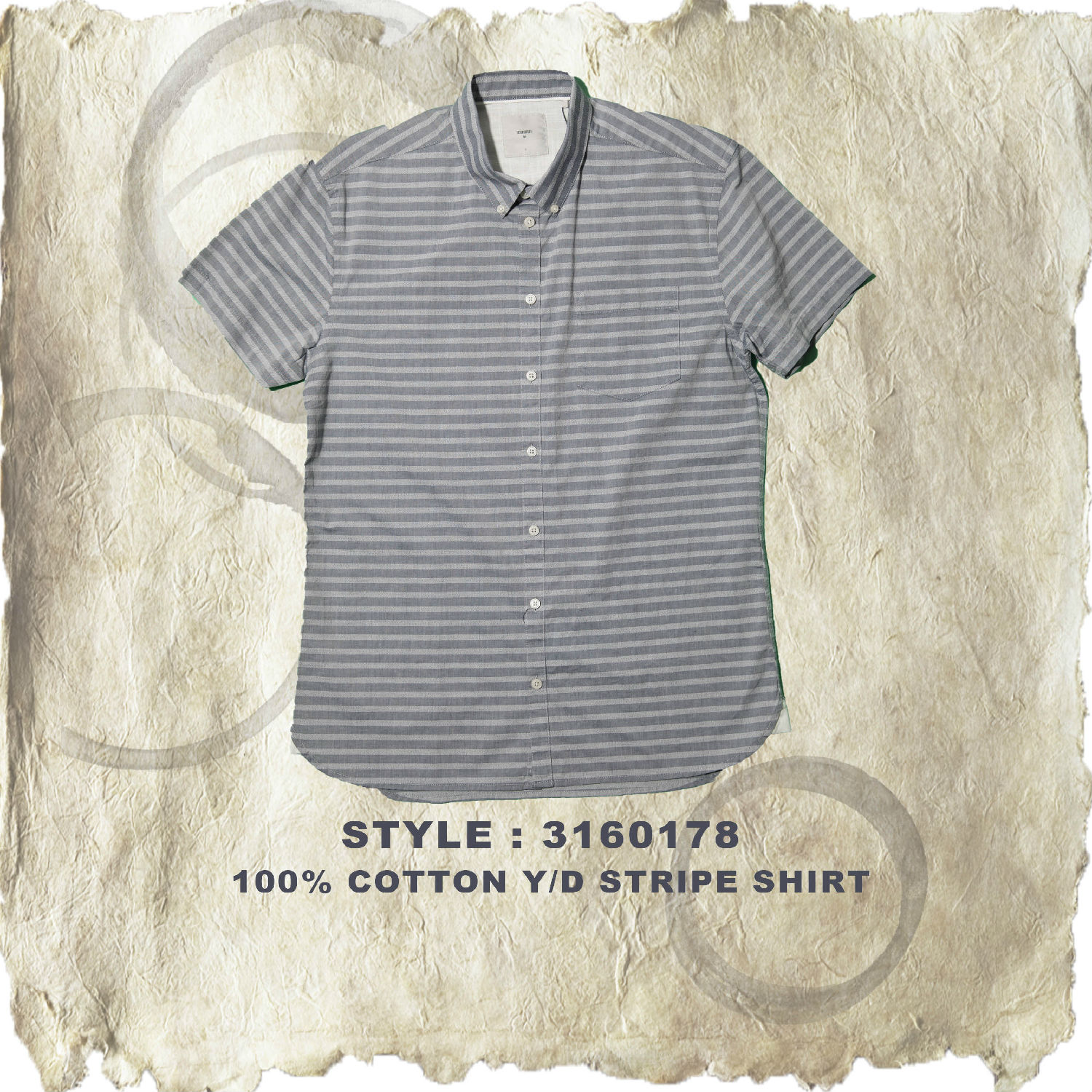 Men 100% cotton y/d stripe short sleeve shirt with garment washing.