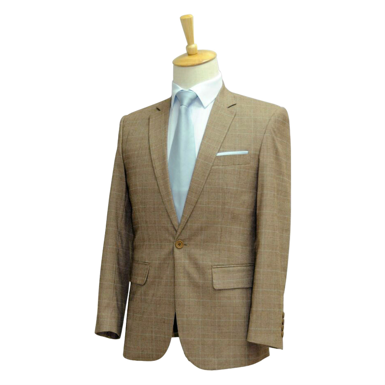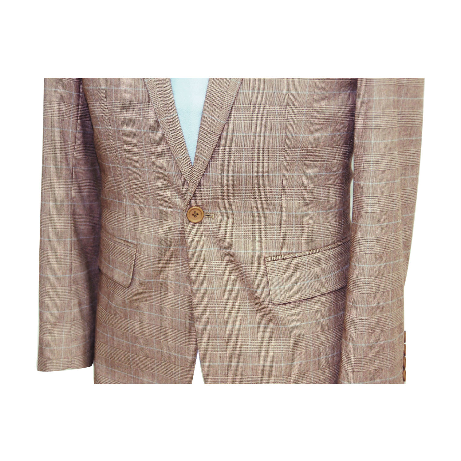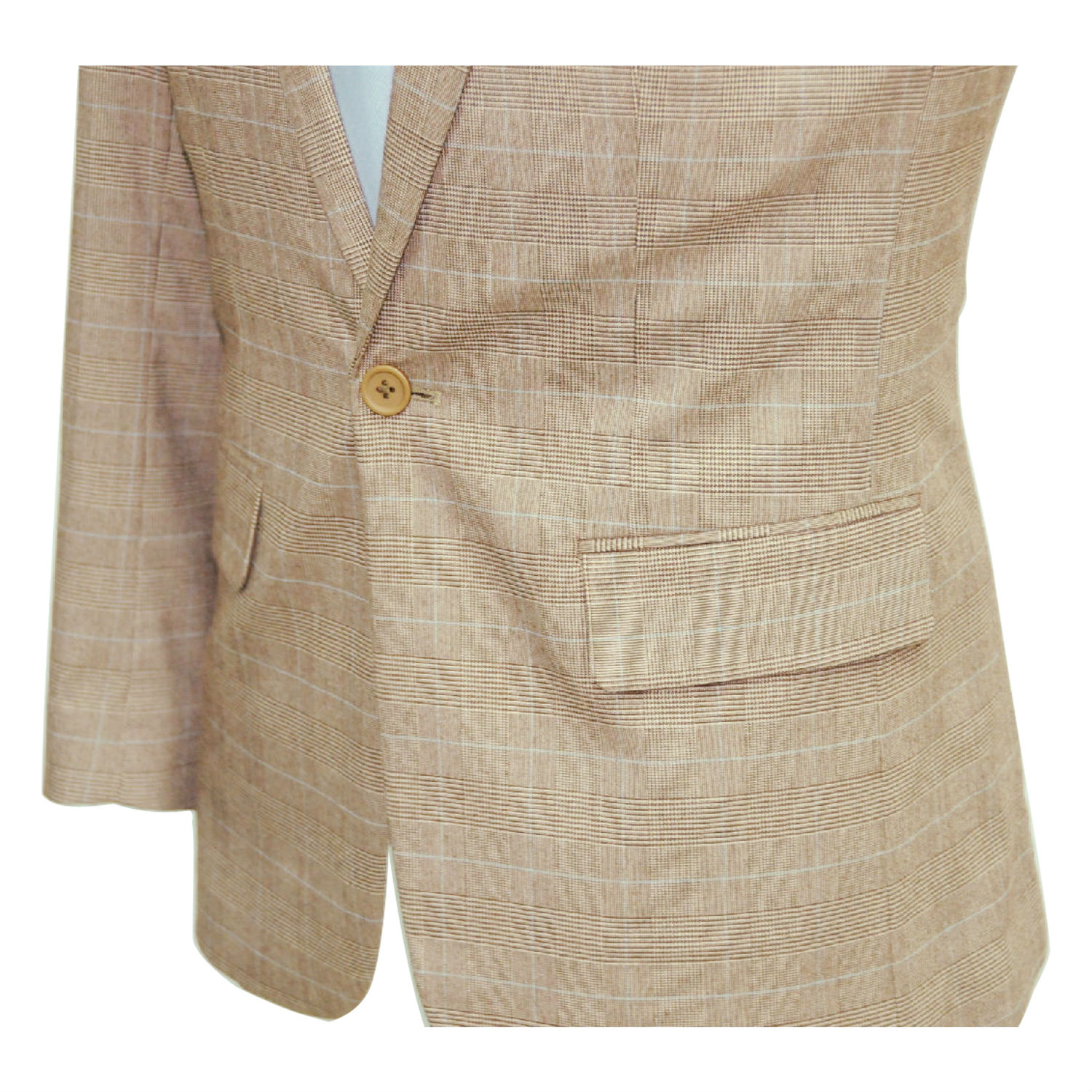 This is a single-breasted suit jacket covered with checkered patterns. The jacket suit has two front flap pockets and a left chest pocket to store a wallet, a cell phone and other necessary items. This checked suit allows utmost in comfort as well as ease of movement.