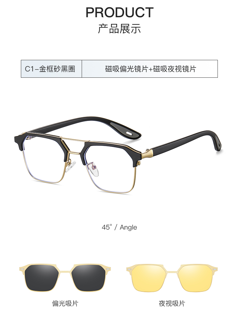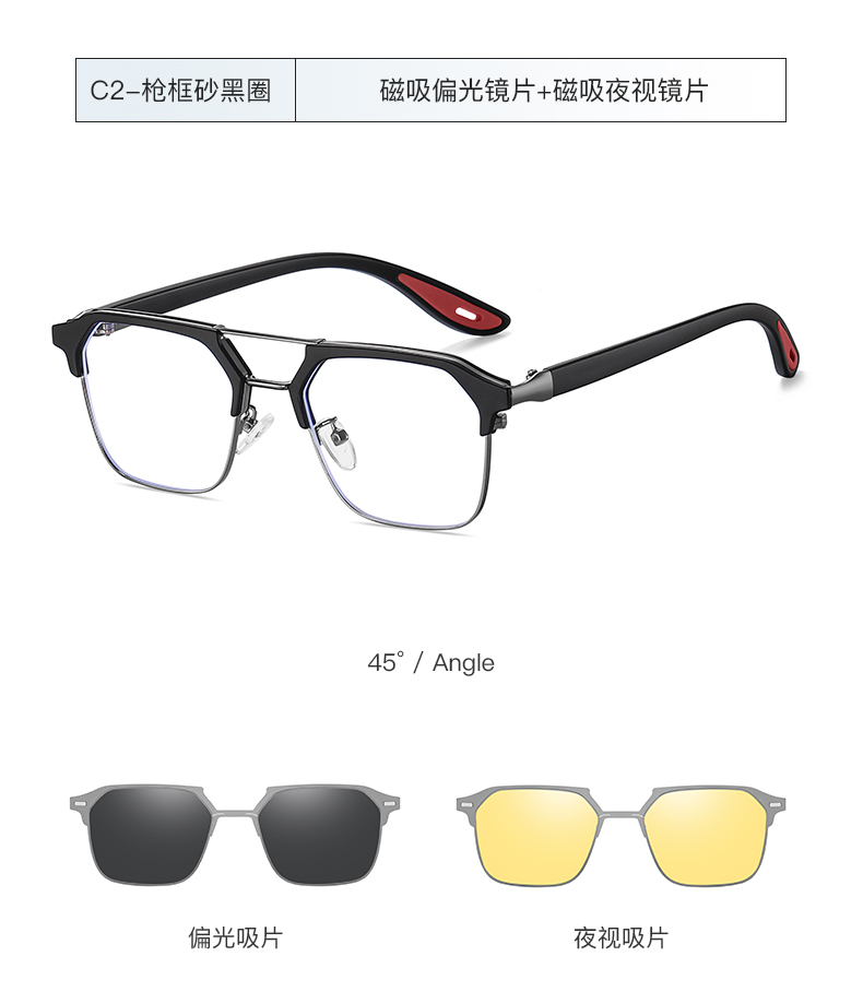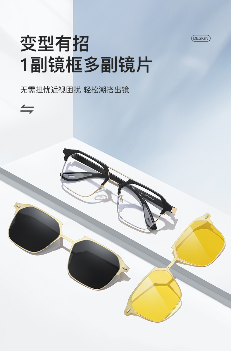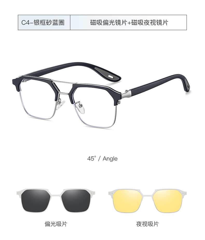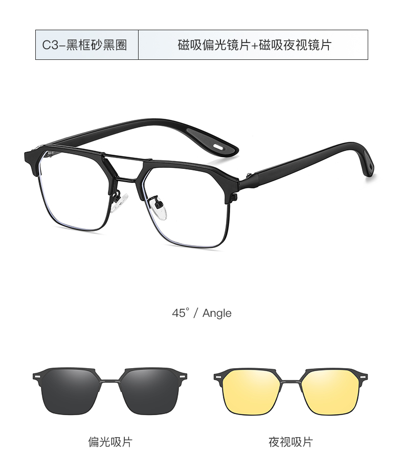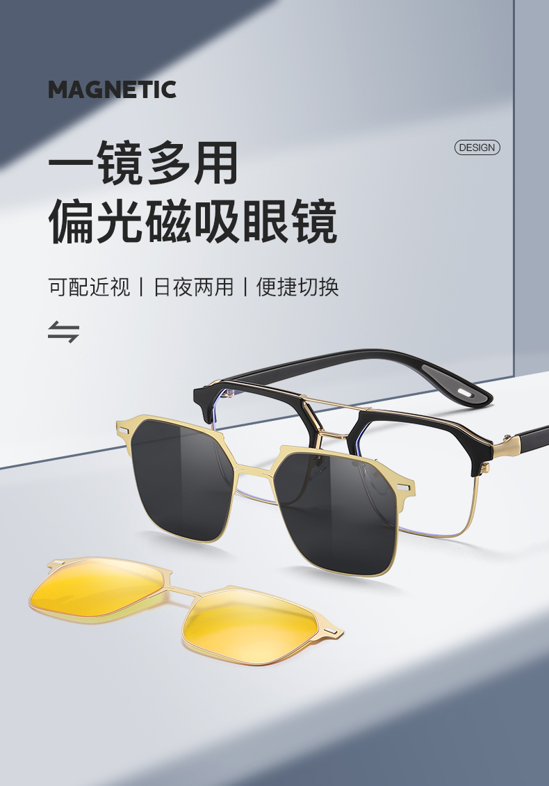 Men Metal + TR 90 Polarized Magnet Clip on Sunglasses 7732